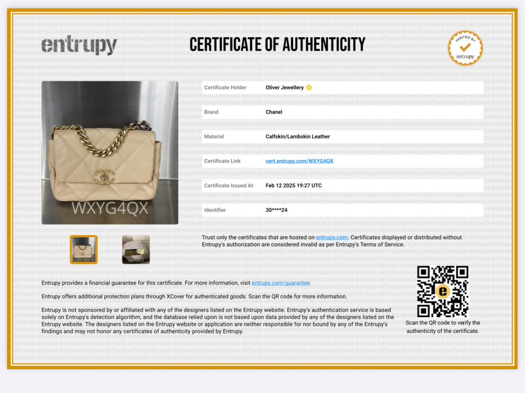 Dust Bag, Authenticity Card, Entrupy Certificate of Authenticity