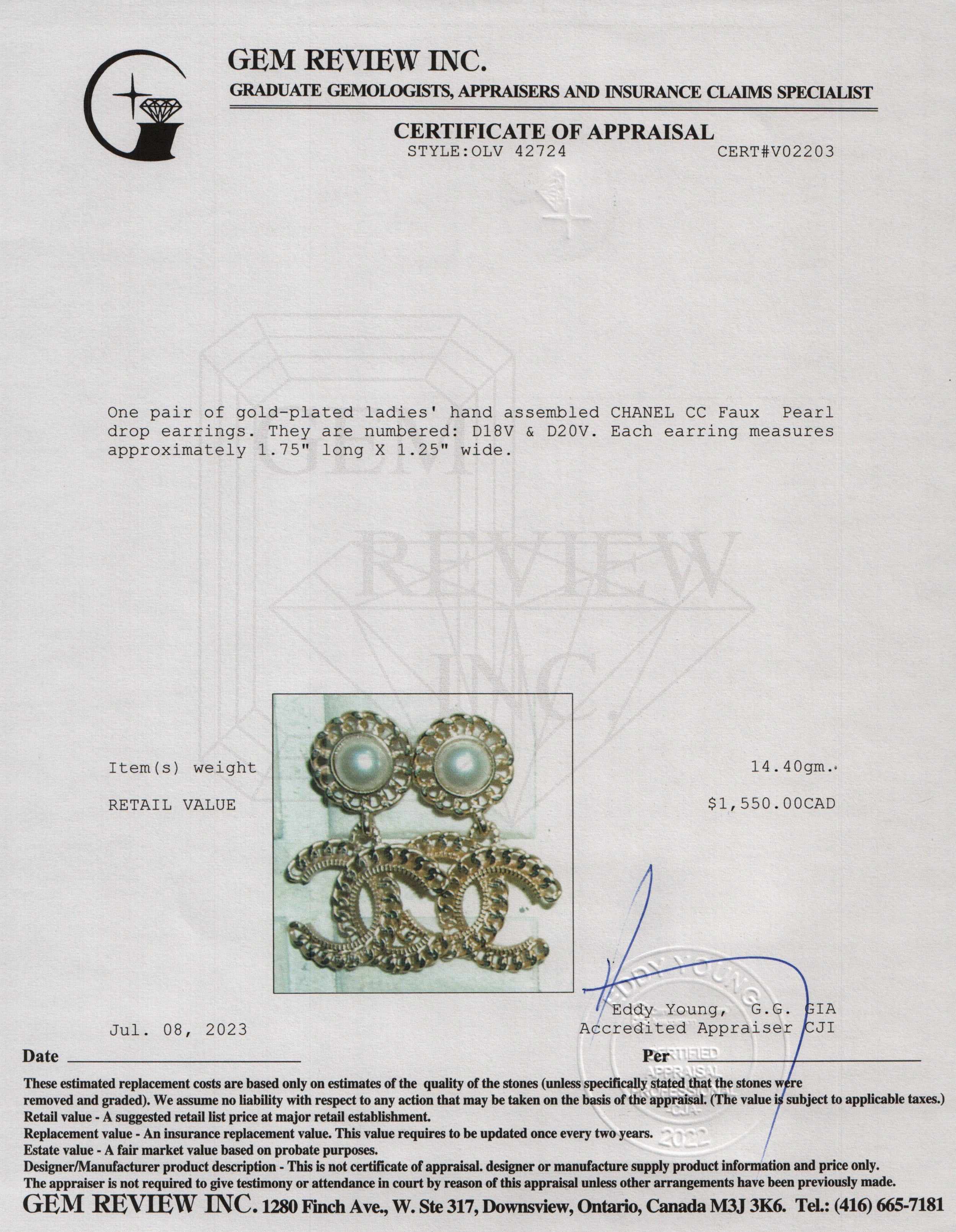 Chanel 2022 Faux Pearl CC Drop Earrings
