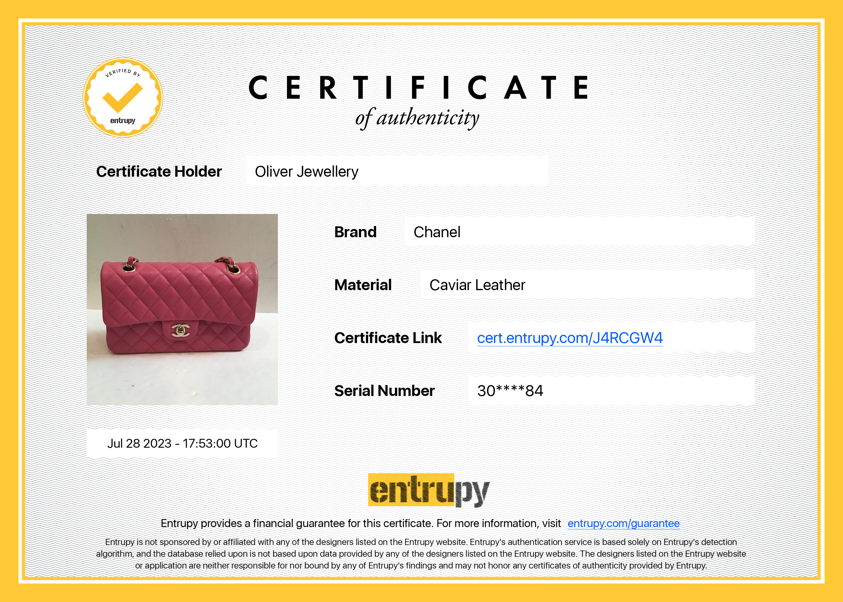 Included Items: Original Chanel Box, Authenticity Card, Dust Bag and Entrupy Certificate of Authenticity #: J4RCGW4