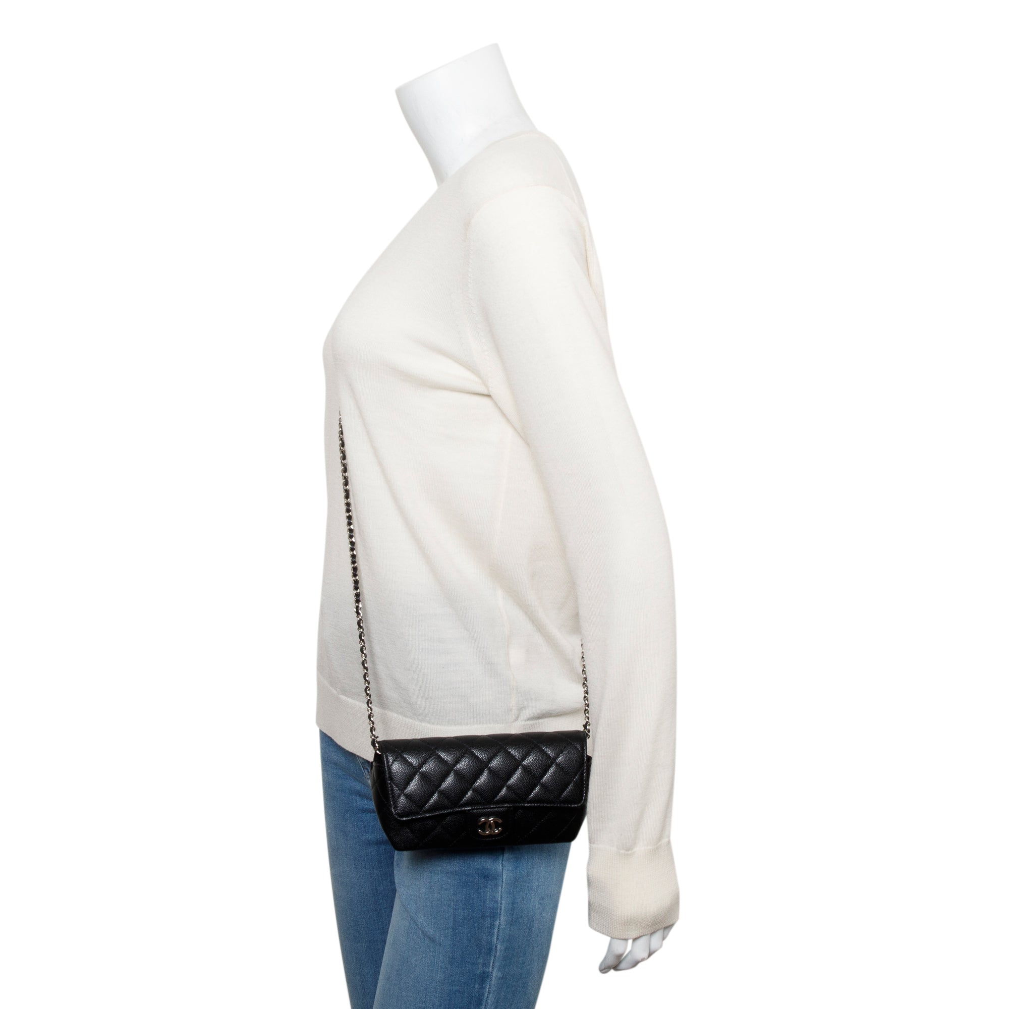 2021 Black Quilted Caviar Leather Classic Sunglasses Case on Chain w/ Box