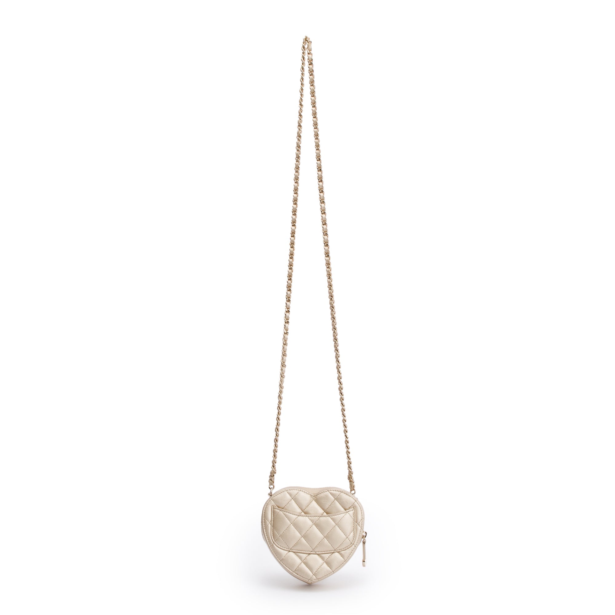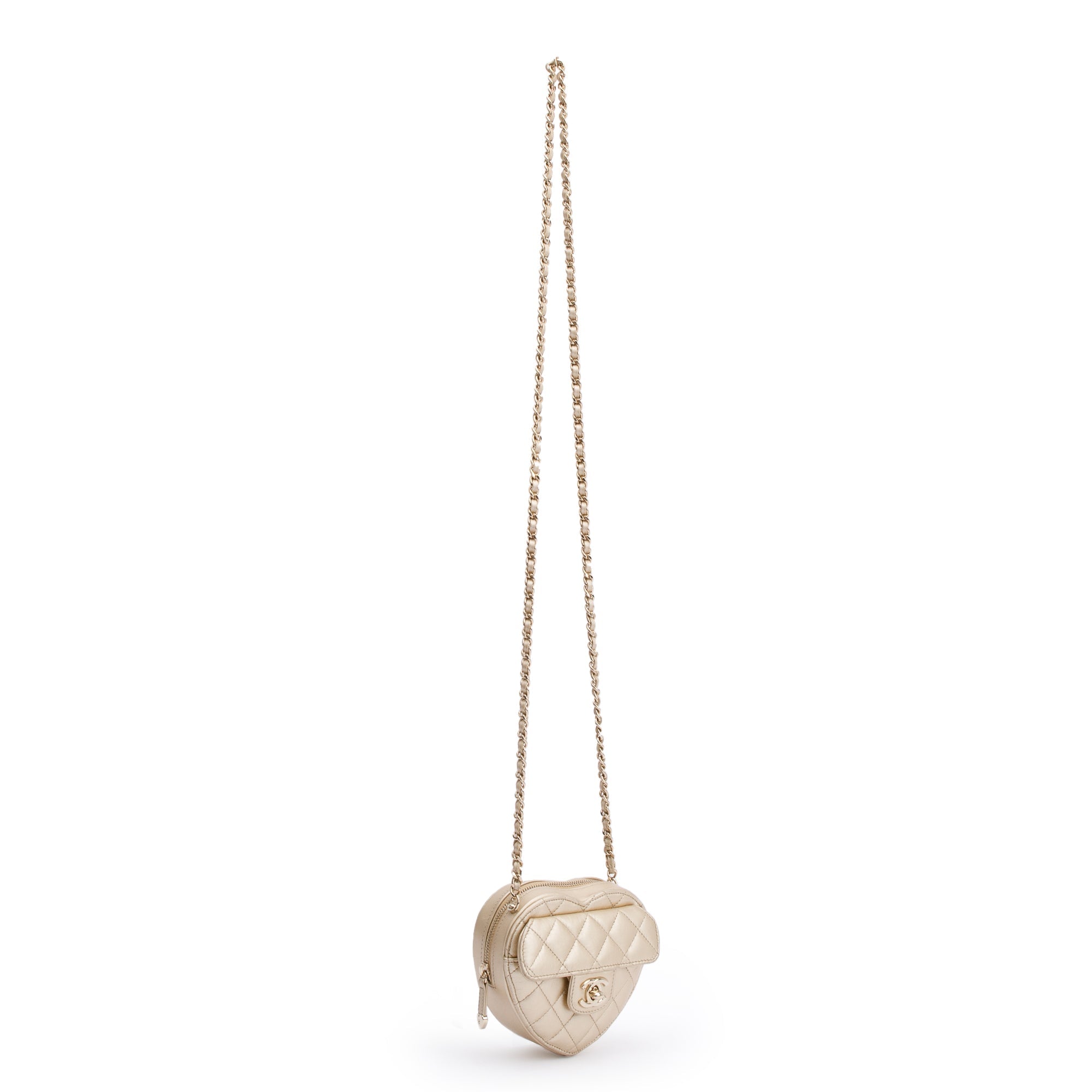 2021 Gold Lambskin Leather Mini CC In Love Heart Bag w/ Box & Authenticity Card