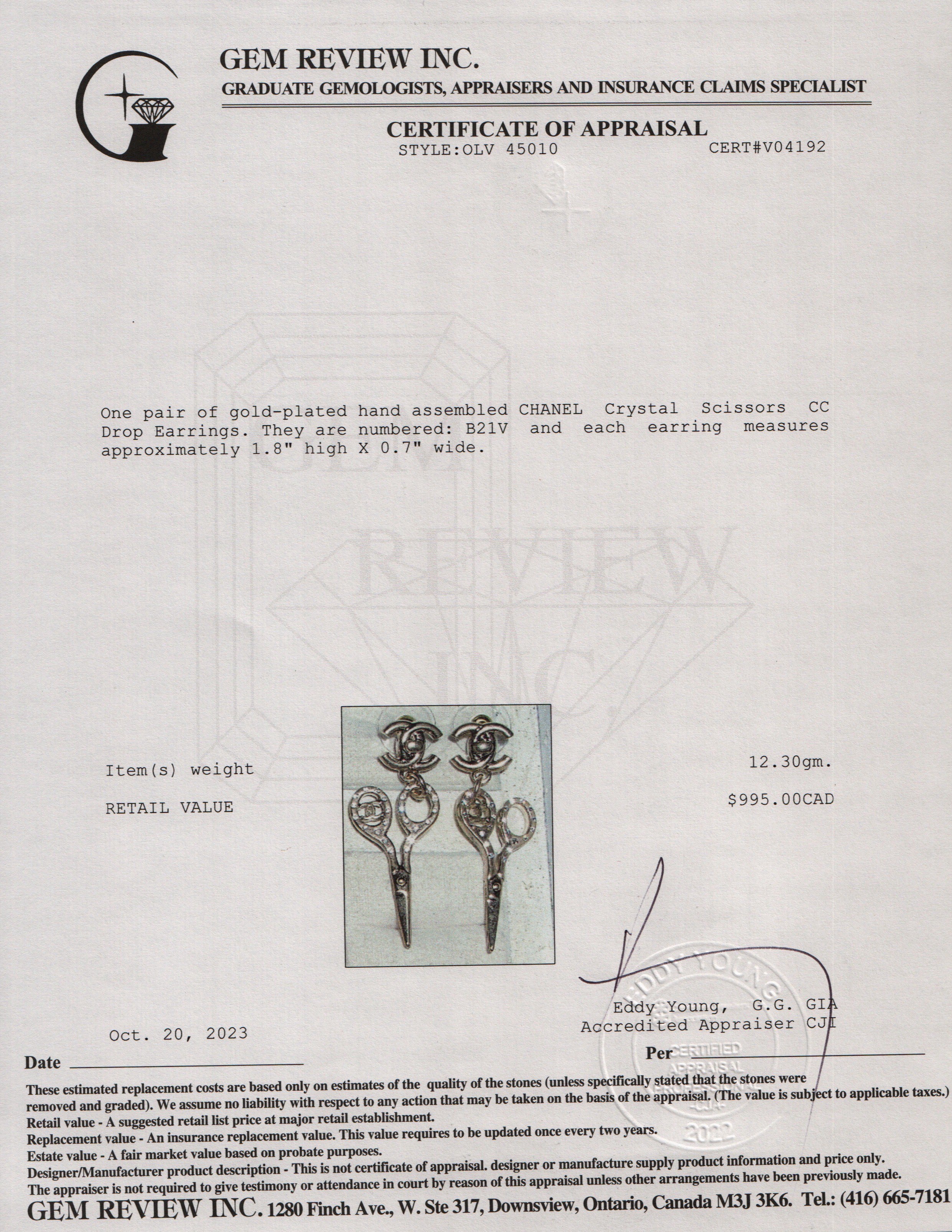 2021 Gold Plated Crystal Scissor CC Drop Earrings