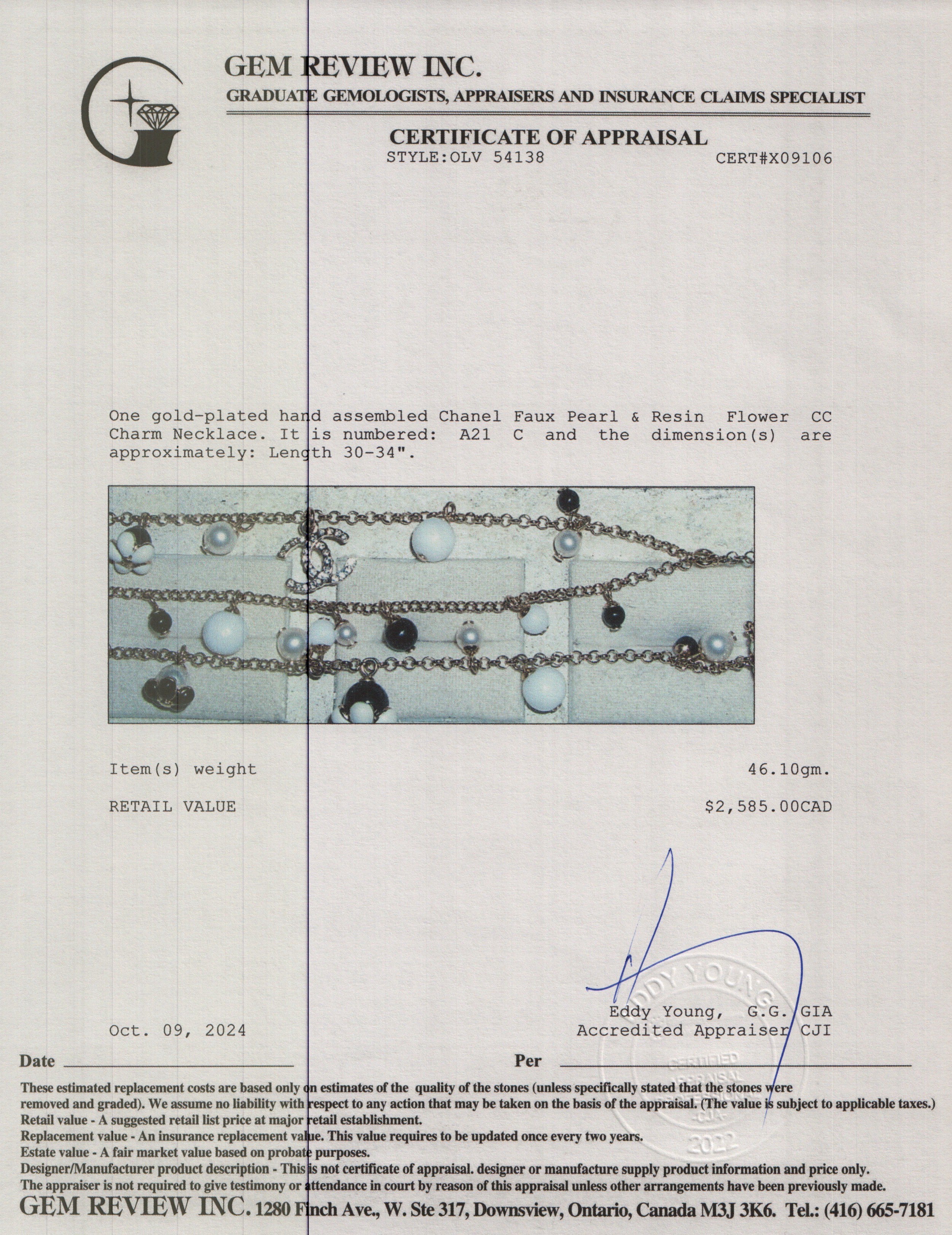 2021 Gold-Plated Faux Pearl & Resin Flower CC Charm Necklace