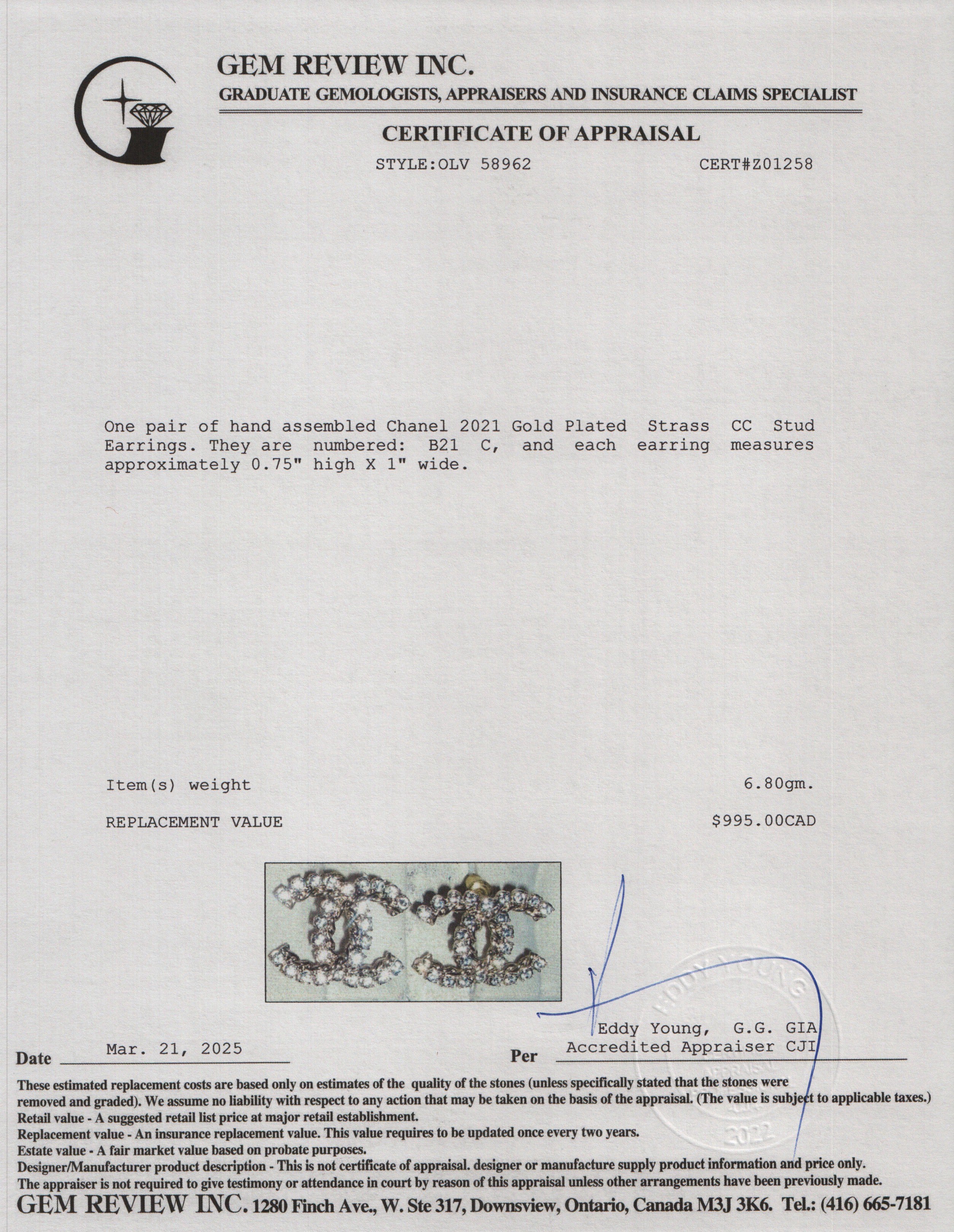 2021 Gold Plated Strass CC Stud Earrings w/ Box