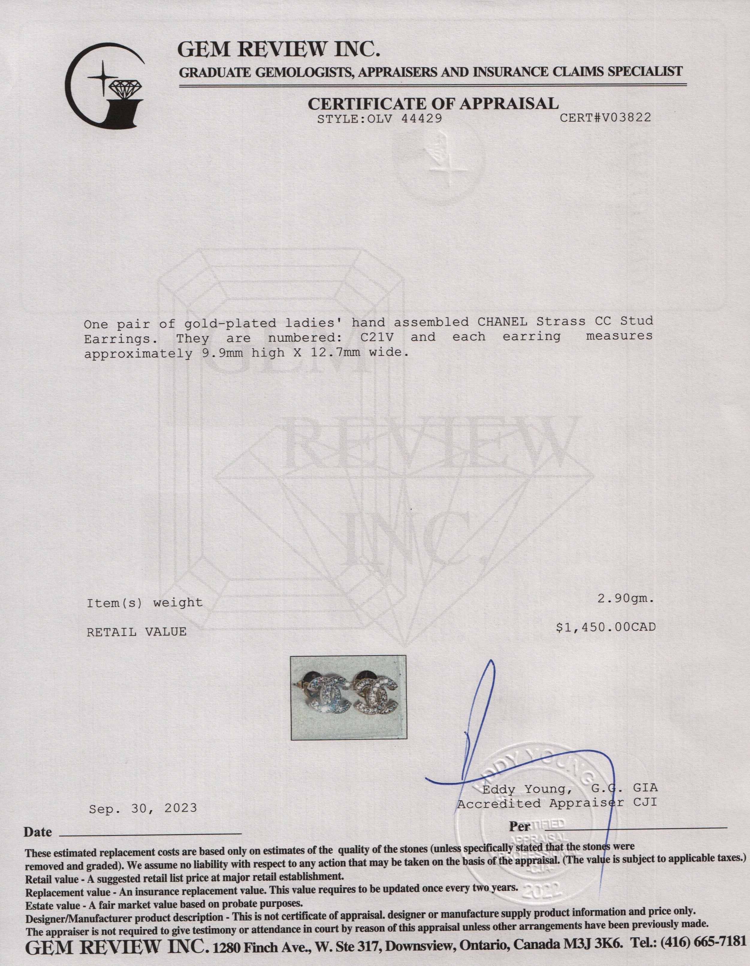 2021 Gold Plated Strass CC Stud Earrings w/ Box & Receipt