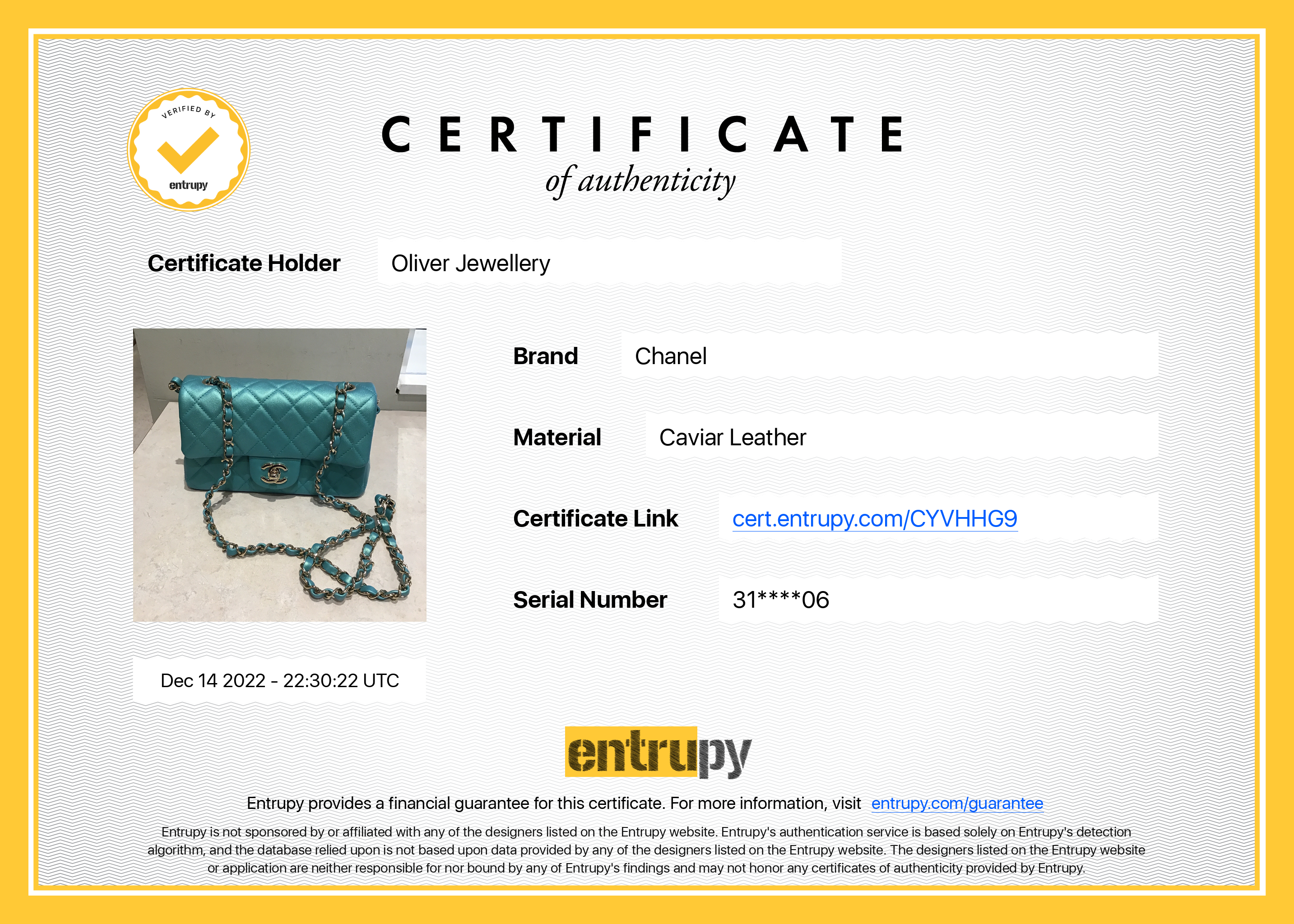 Included Items: Original Chanel Box, Authenticity Card, Dust Bag and Entrupy Certificate of Authenticity #: CYVHHG9