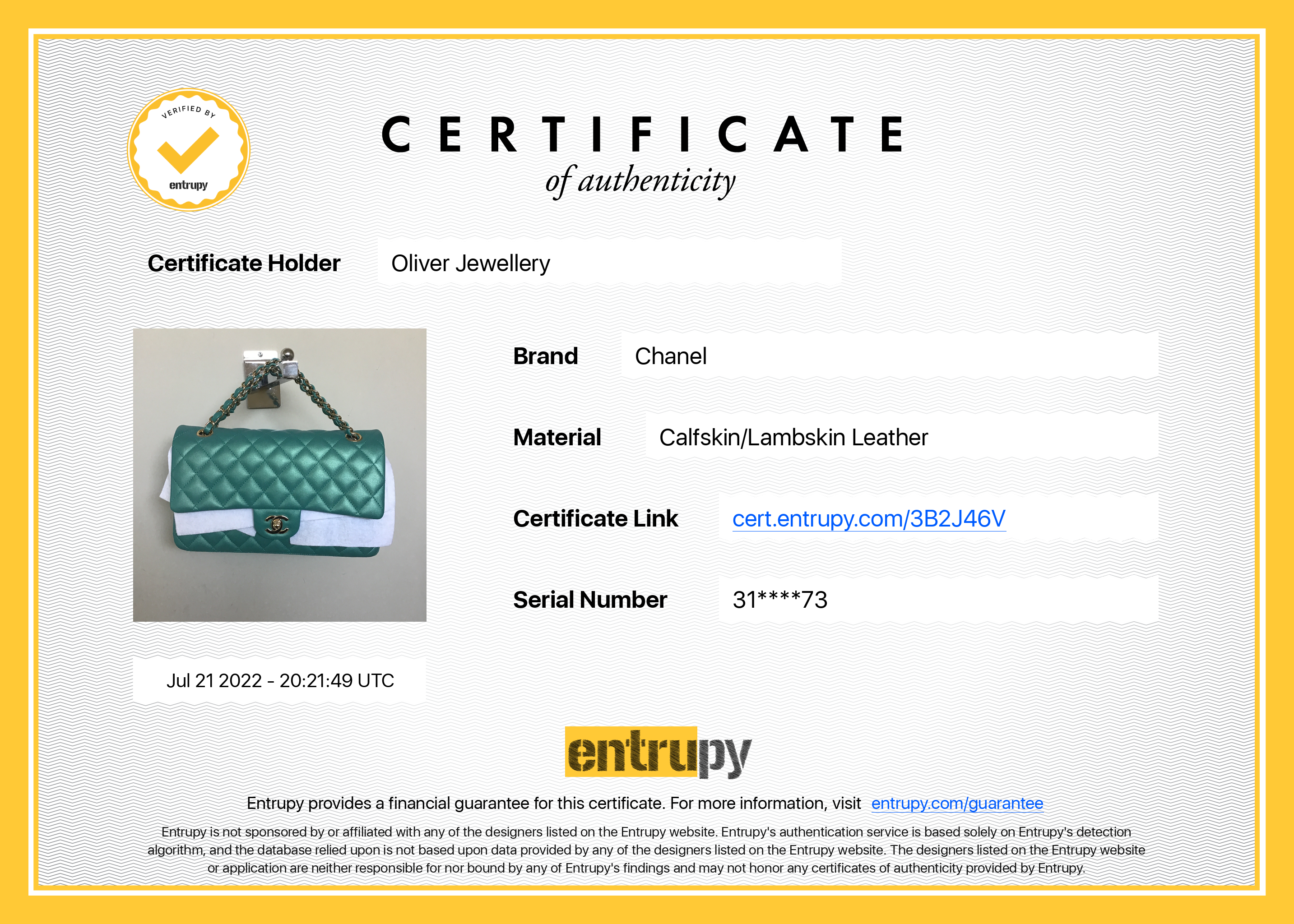 Included Items: Original Chanel Box, Dust Bag, Authenticity Card, Booklet & Entrupy Certificate of Authenticity #: 3B2J46V