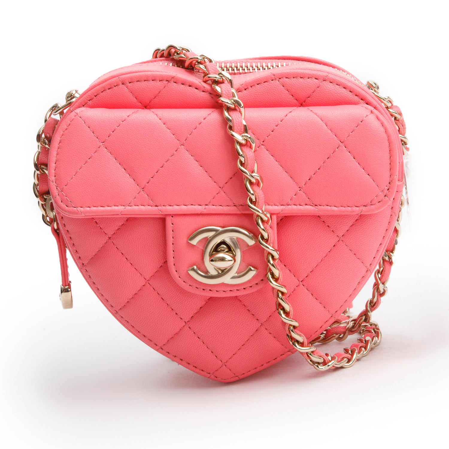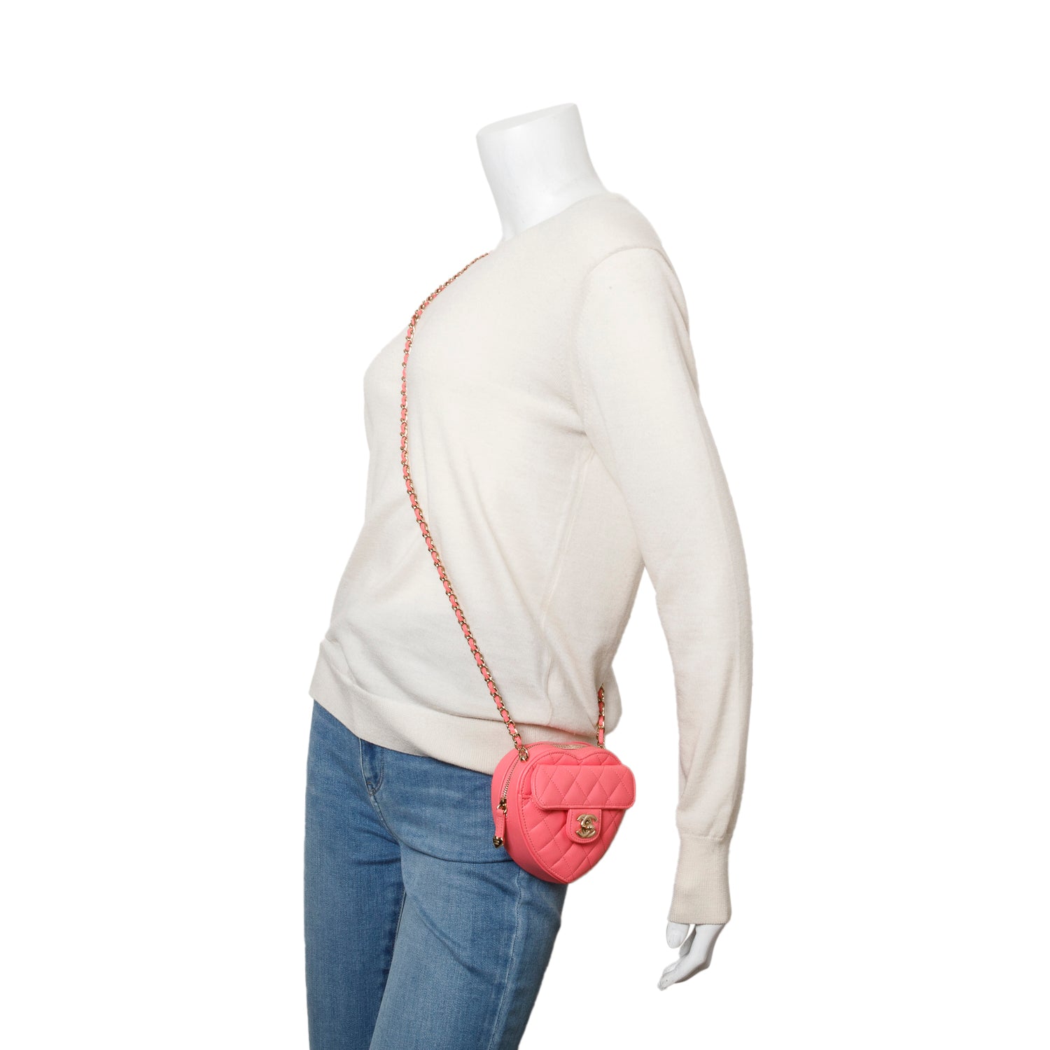 2021 Pink Lambskin Leather Mini CC In Love Heart Bag w/ Authenticity Card