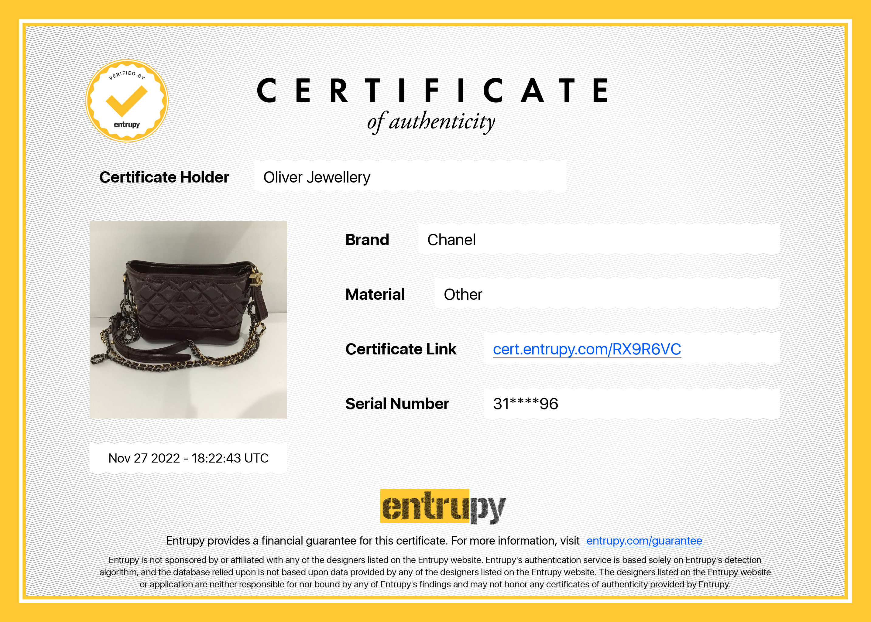 Included Items: Entrupy Certificate of Authenticity #: RX9R6VC