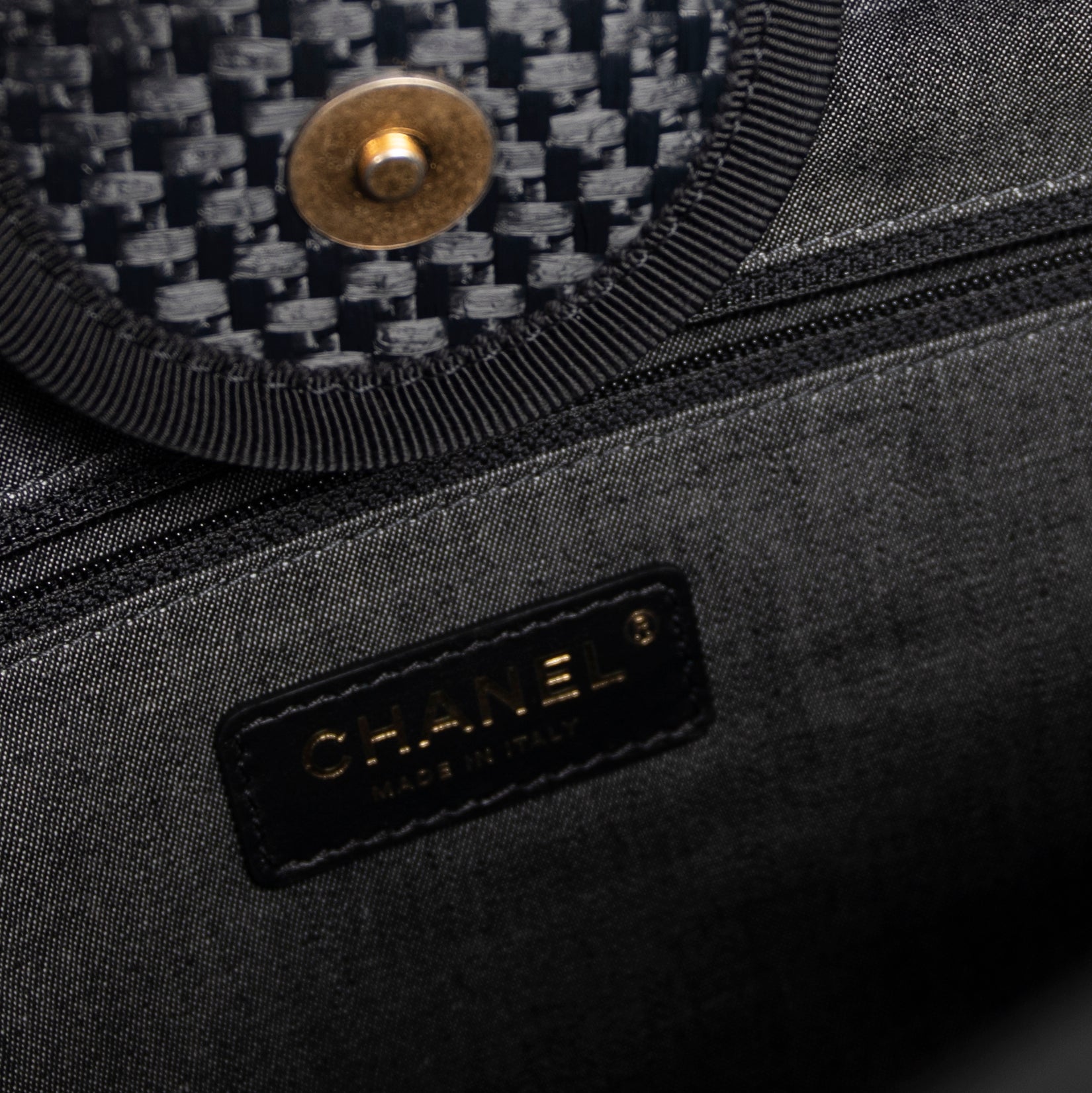 2021 Straw Raffia Calfskin Chain Medium Deauville Tote w/ Box, Receipt & Authenticity Card