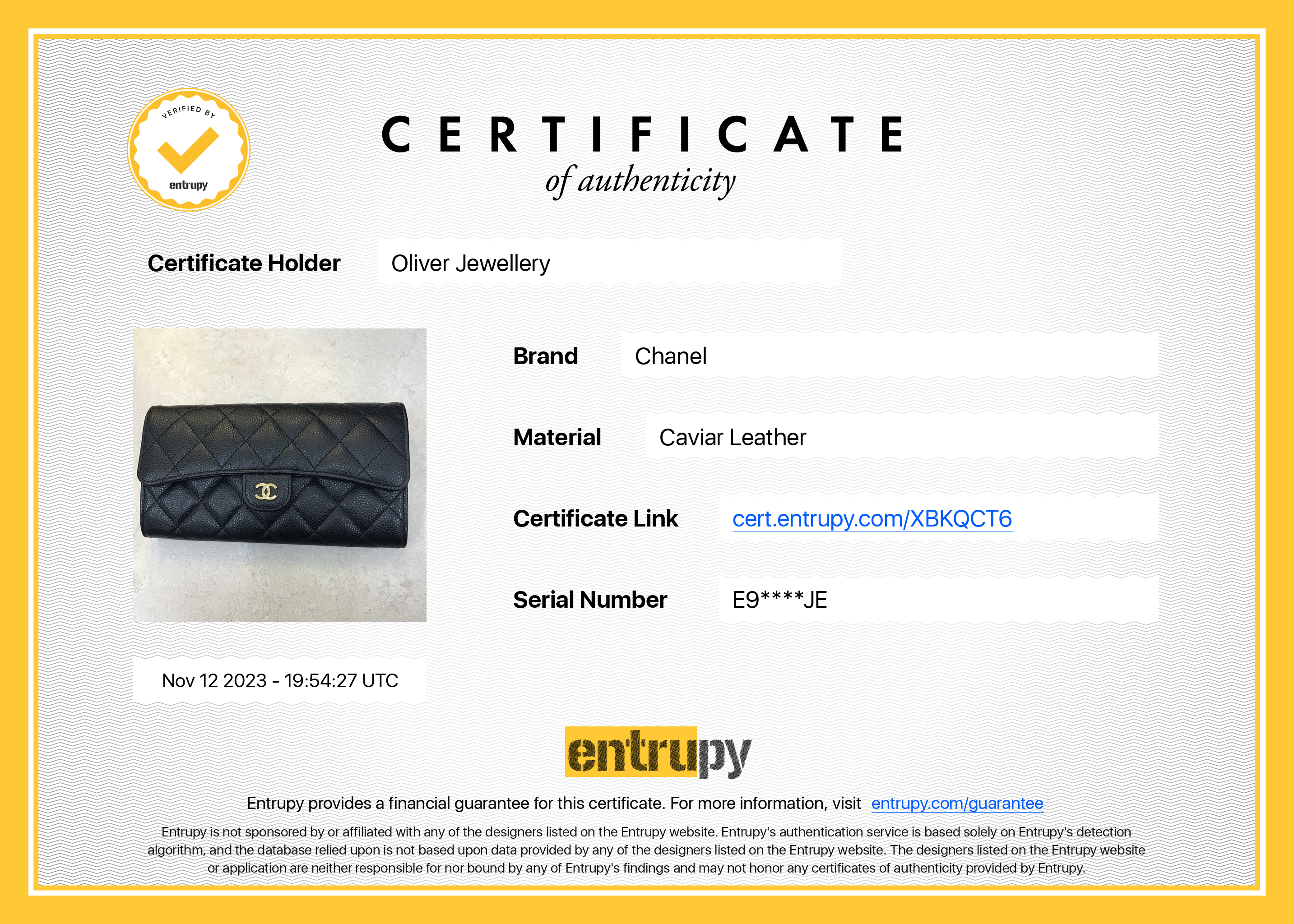 Box, Dust Bag, Entrupy Certificate of Authenticity
