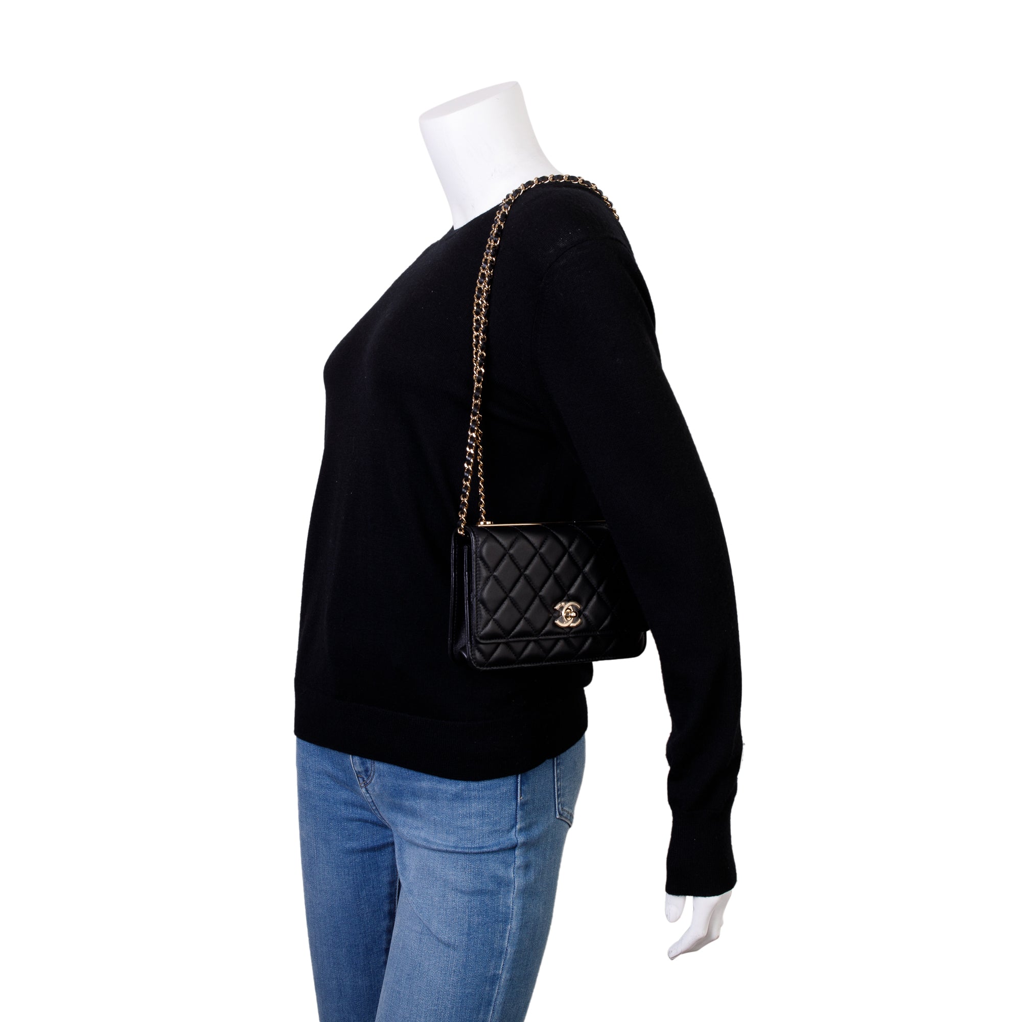2022 Black Lambskin Leather Trendy Wallet on Chain w/ Box