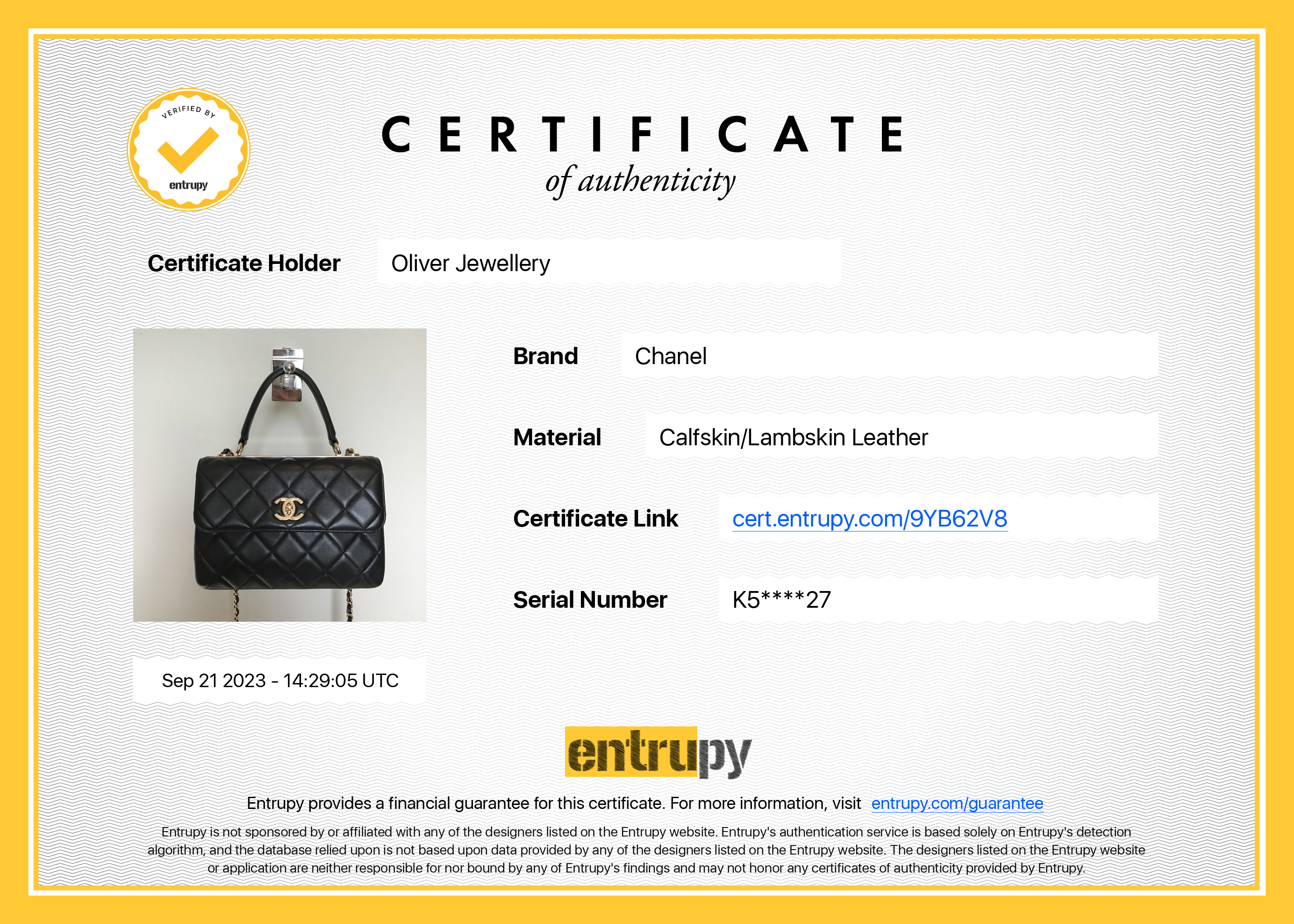 Box, Dust Bag, Receipt, Booklet, Entrupy Certificate of Authenticity