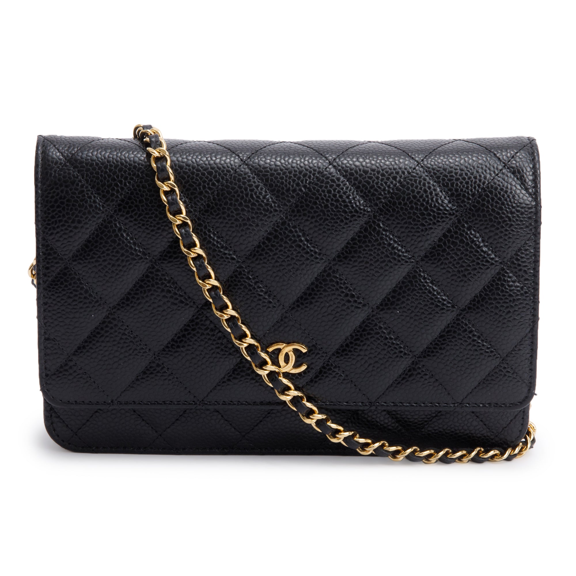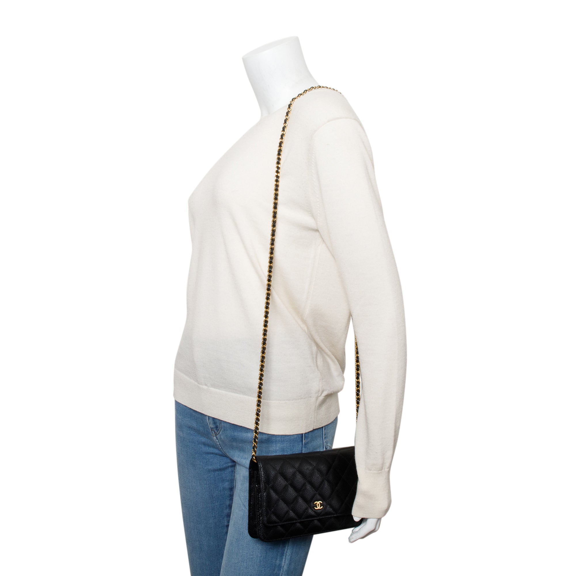 2022 Black Quilted Caviar Leather Classic Wallet on Chain