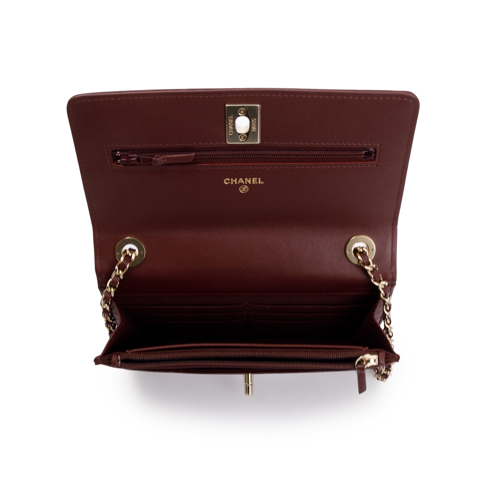 2022 Burgundy Lambskin Leather Trendy Wallet on Chain w/ Box & Receipt