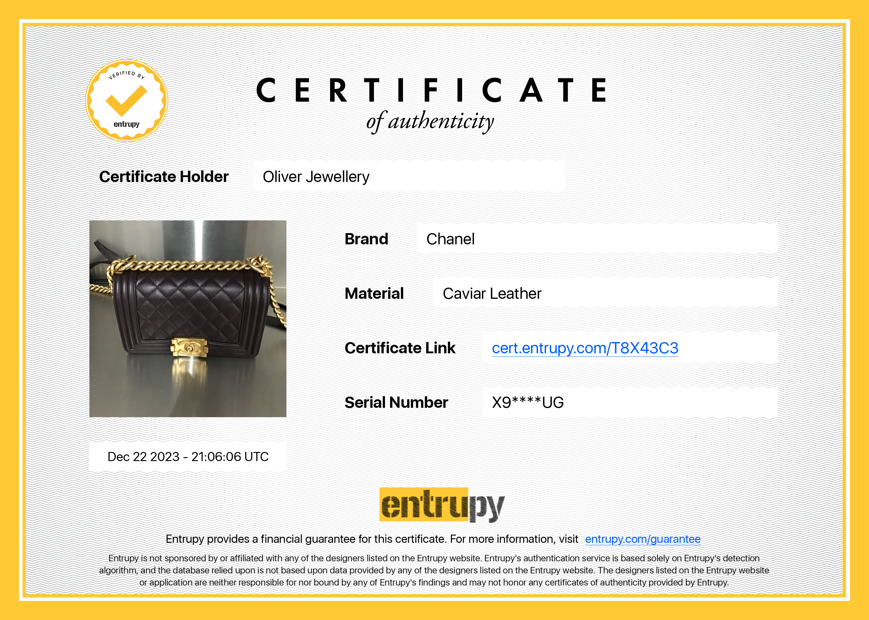 Box, Receipt, Dust Bag, Booklet, Entrupy Certificate of Authenticity