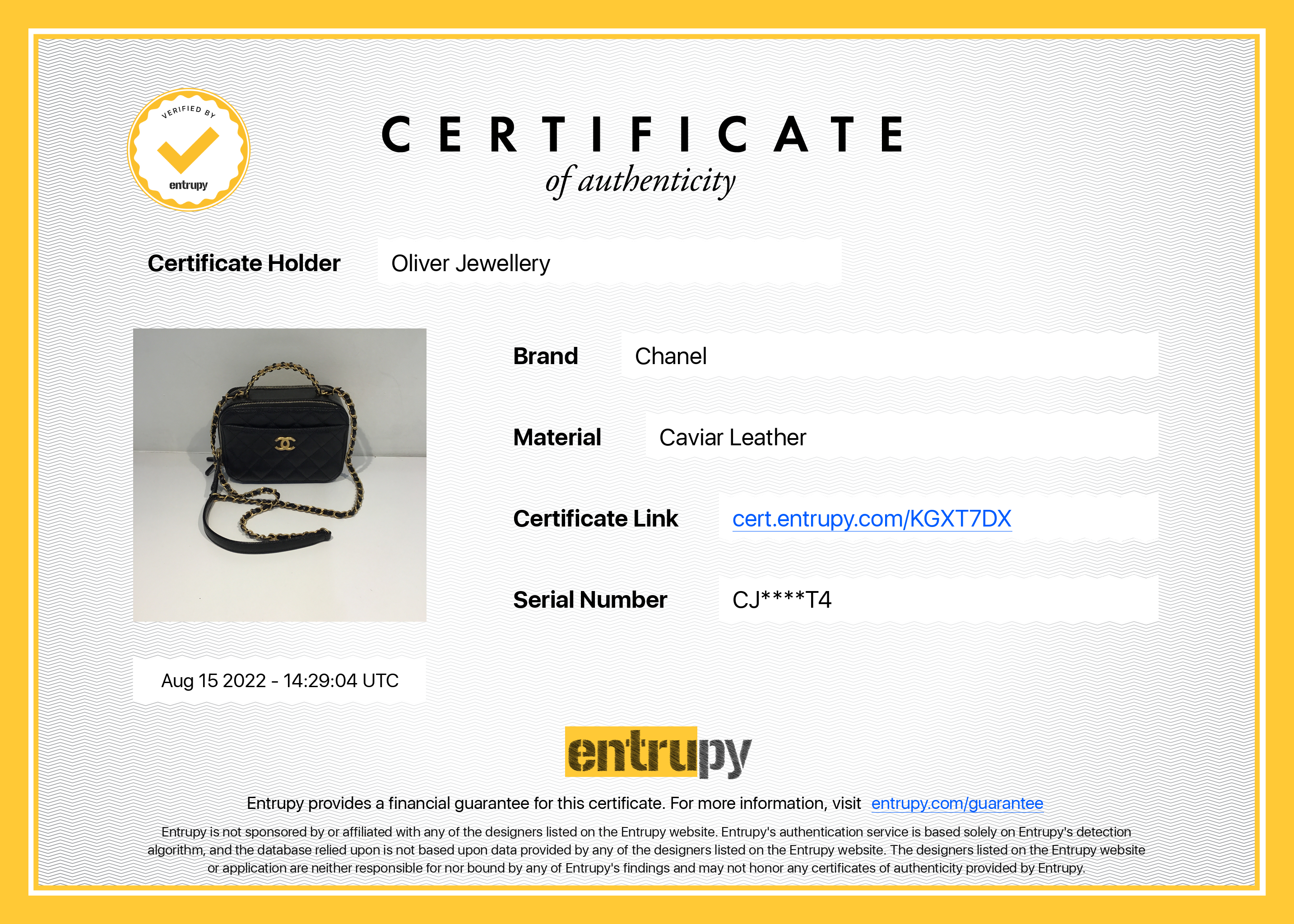Included Items: Original Chanel Box, Dust Bag, Receipt and Entrupy Certificate of Authenticity #: KGXT7DX