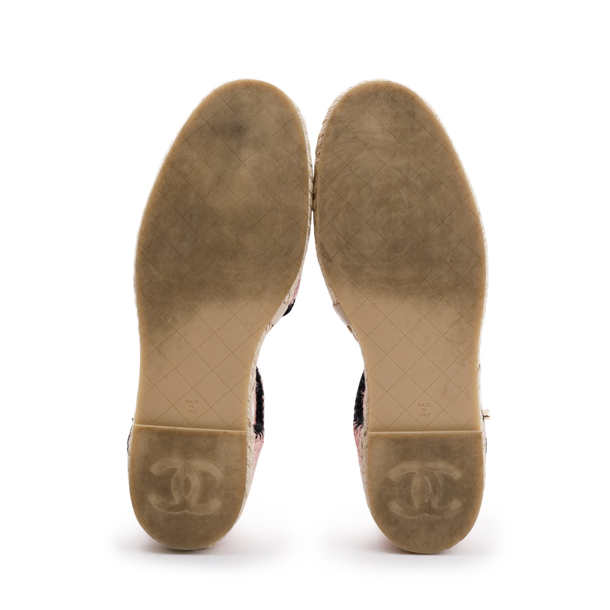 2022 Pink/Black Braided Knit Interlocking CC Logo Ankle Strap Espadrilles, Size 41 w/ Box & Receipt