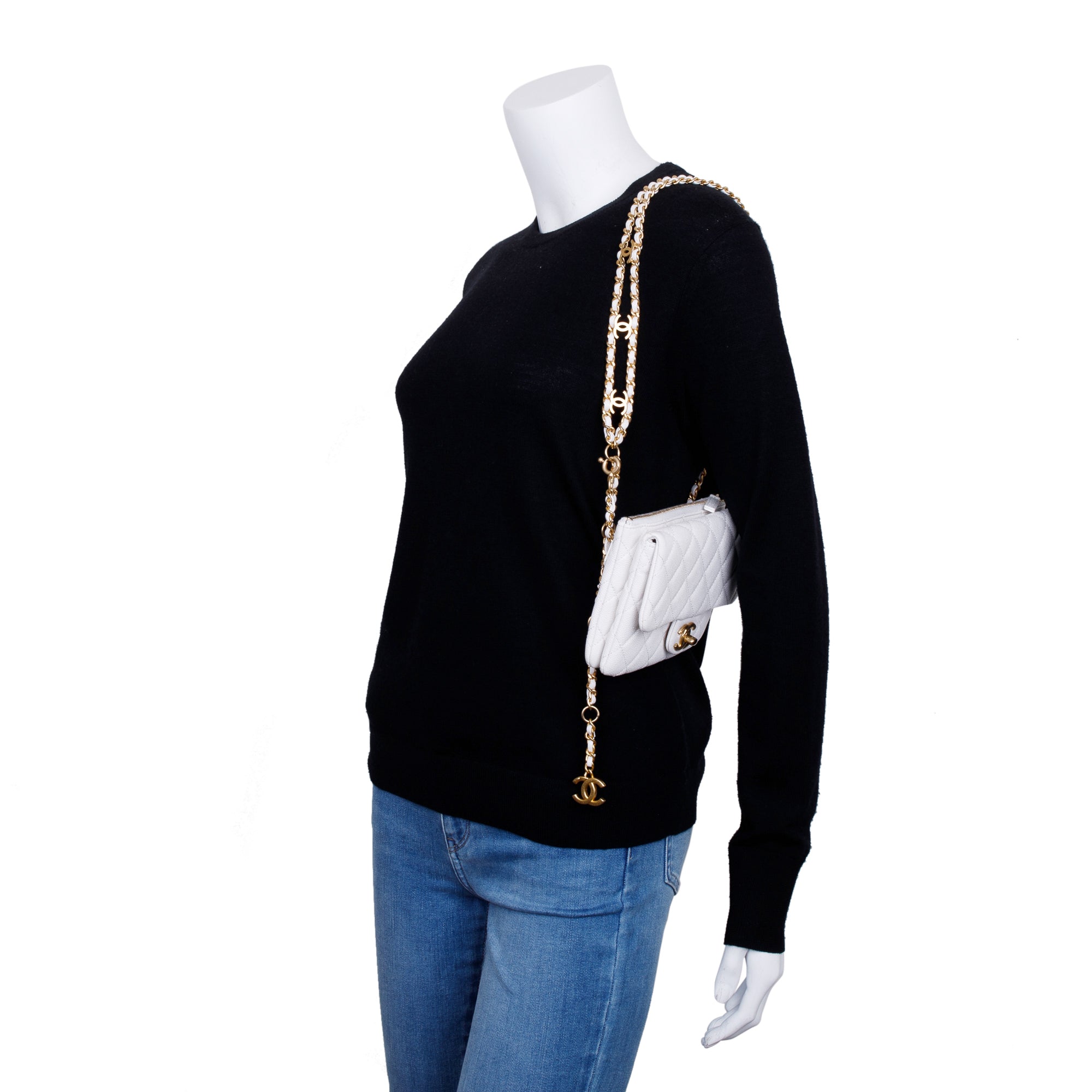 2022 White Quilted Caviar Leather Pick Me Up Belt Bag w/ Box