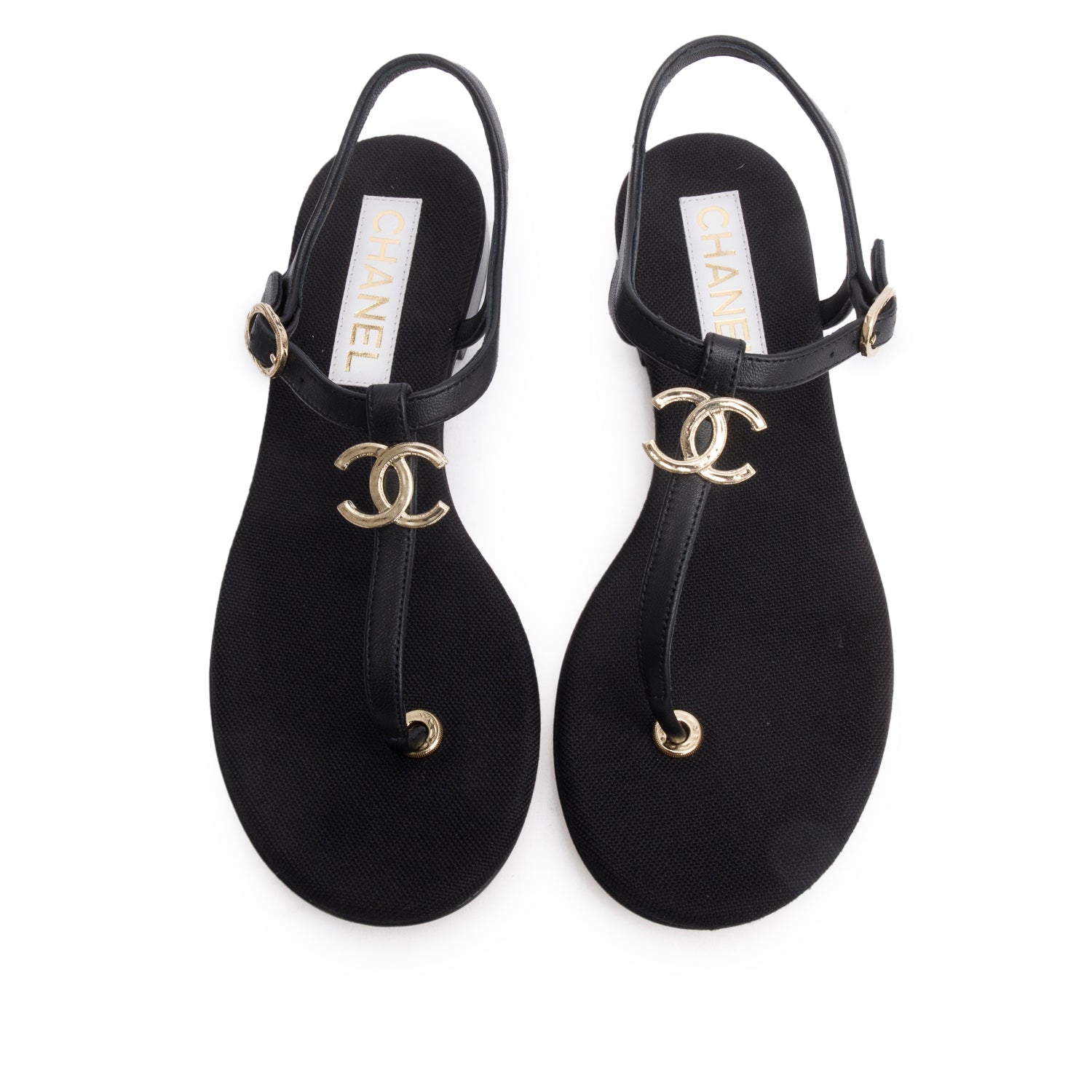 2023 Black Calfskin Leather CC T-Strap Sandals, Size 38 w/ Box & Receipt