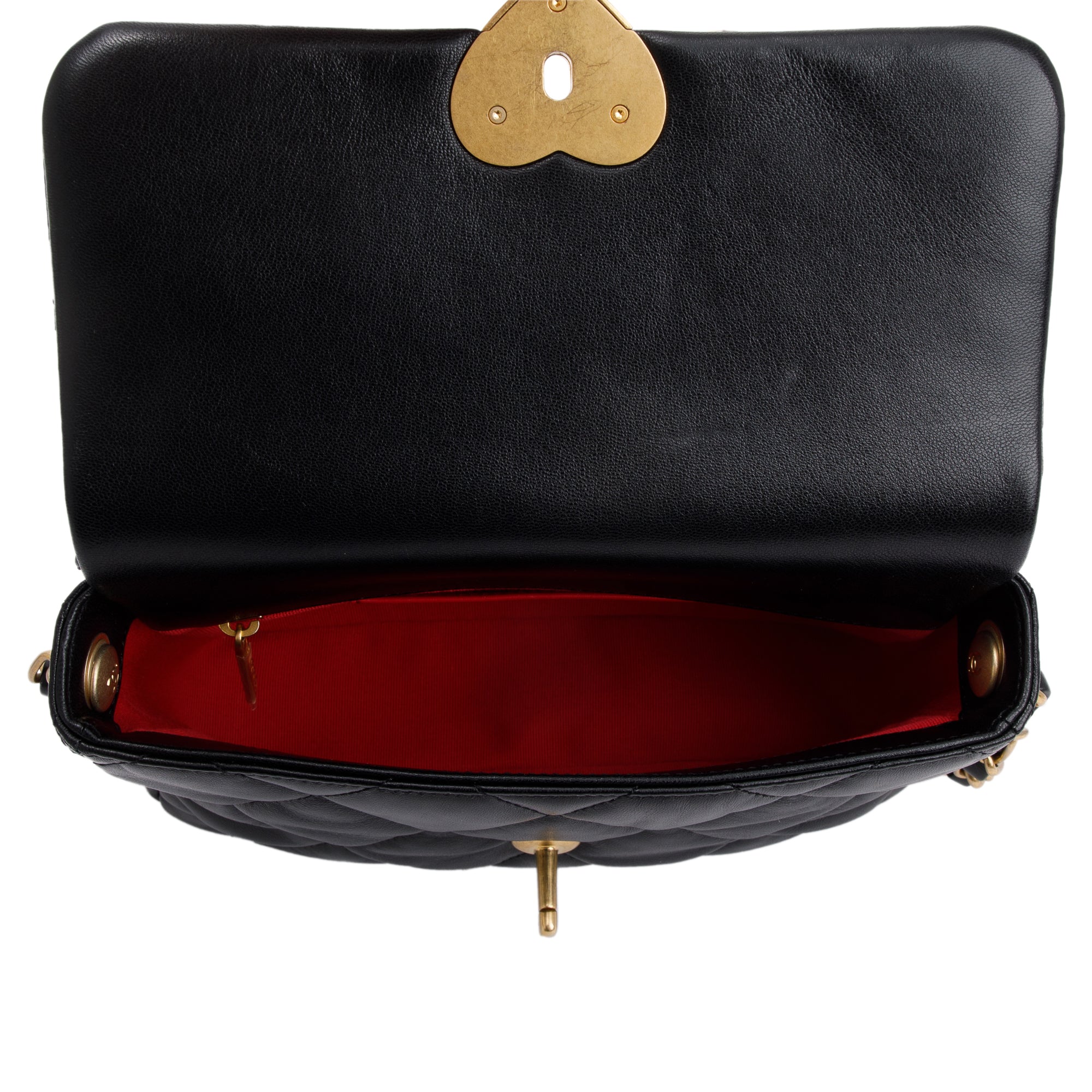2023 Black Quilted Lambskin Leather Small Heart Flap Bag w/ Box