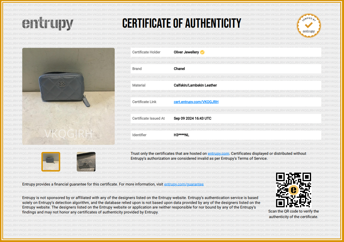 Entrupy Certificate of Authenticity