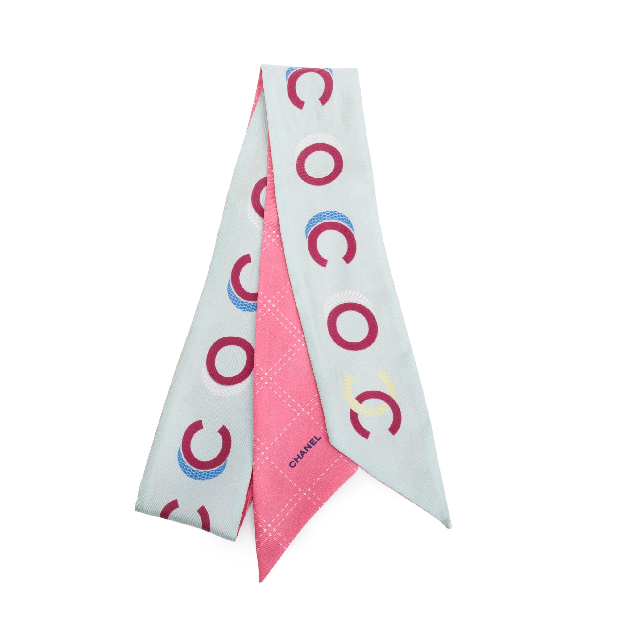 2023 Pink CC Printed Silk Twill Slim Bandeau w/ Box & Receipt