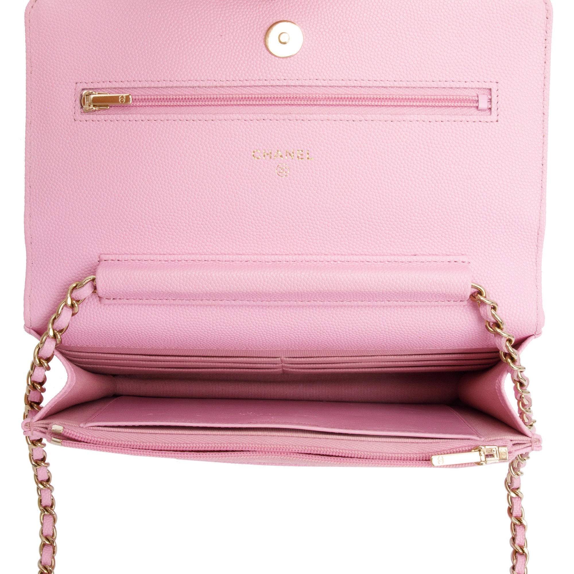 2023 Pink Quilted Caviar Leather Classic Wallet on Chain w/ Box