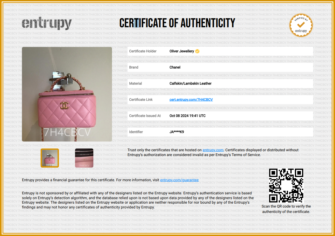 Box, Receipt, Dust Bag, Booklets, Entrupy Certificate of Authenticity