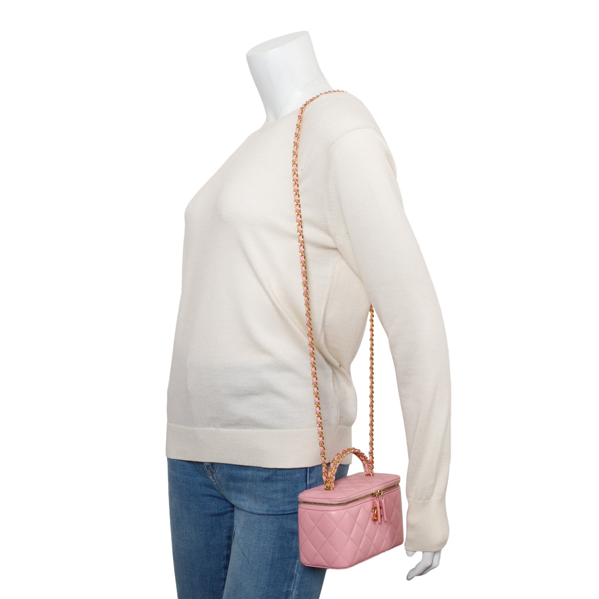 2023 Pink Quilted Lambskin Leather Small Pick Me Up Vanity Case w/ Box & Receipt