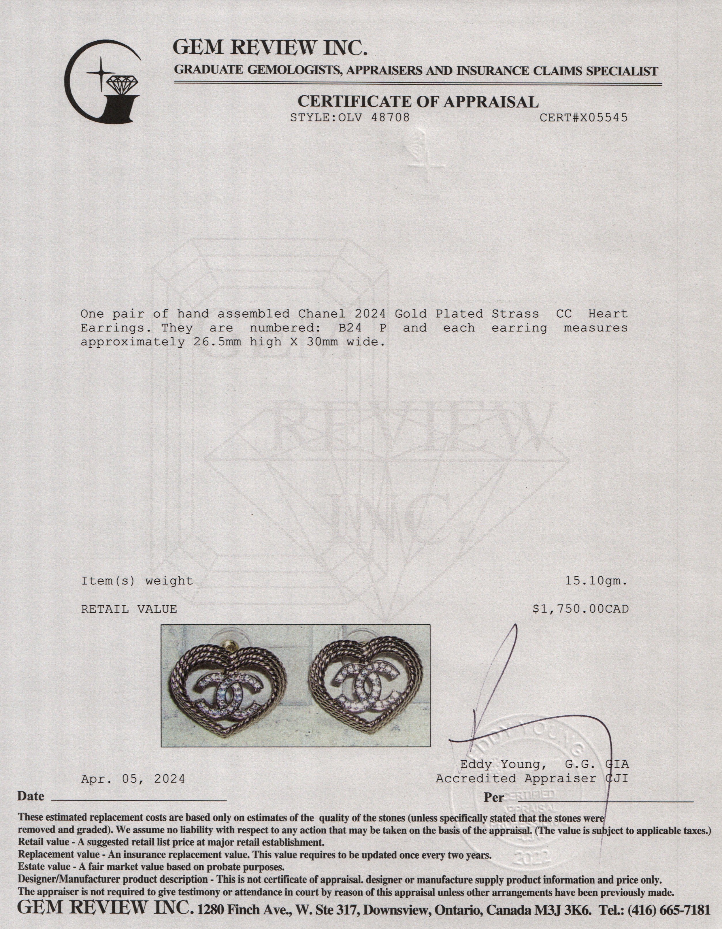 2024 Gold Plated Strass CC Heart Earrings w/ Box