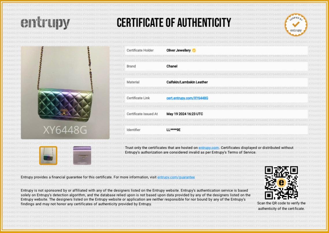2024 Metallic Multicolor Rainbow Lambskin Leather Strass Wallet on Chain w/ Box