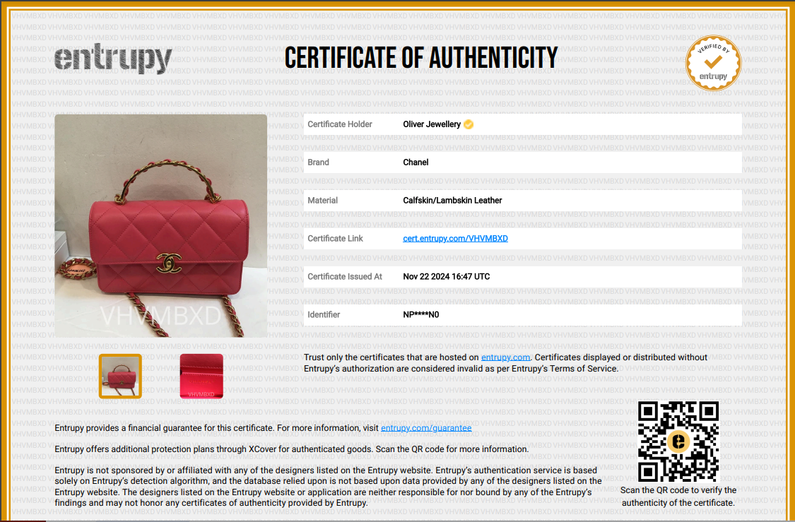 Box, Dust Bag, Entrupy Certificate of Authenticity