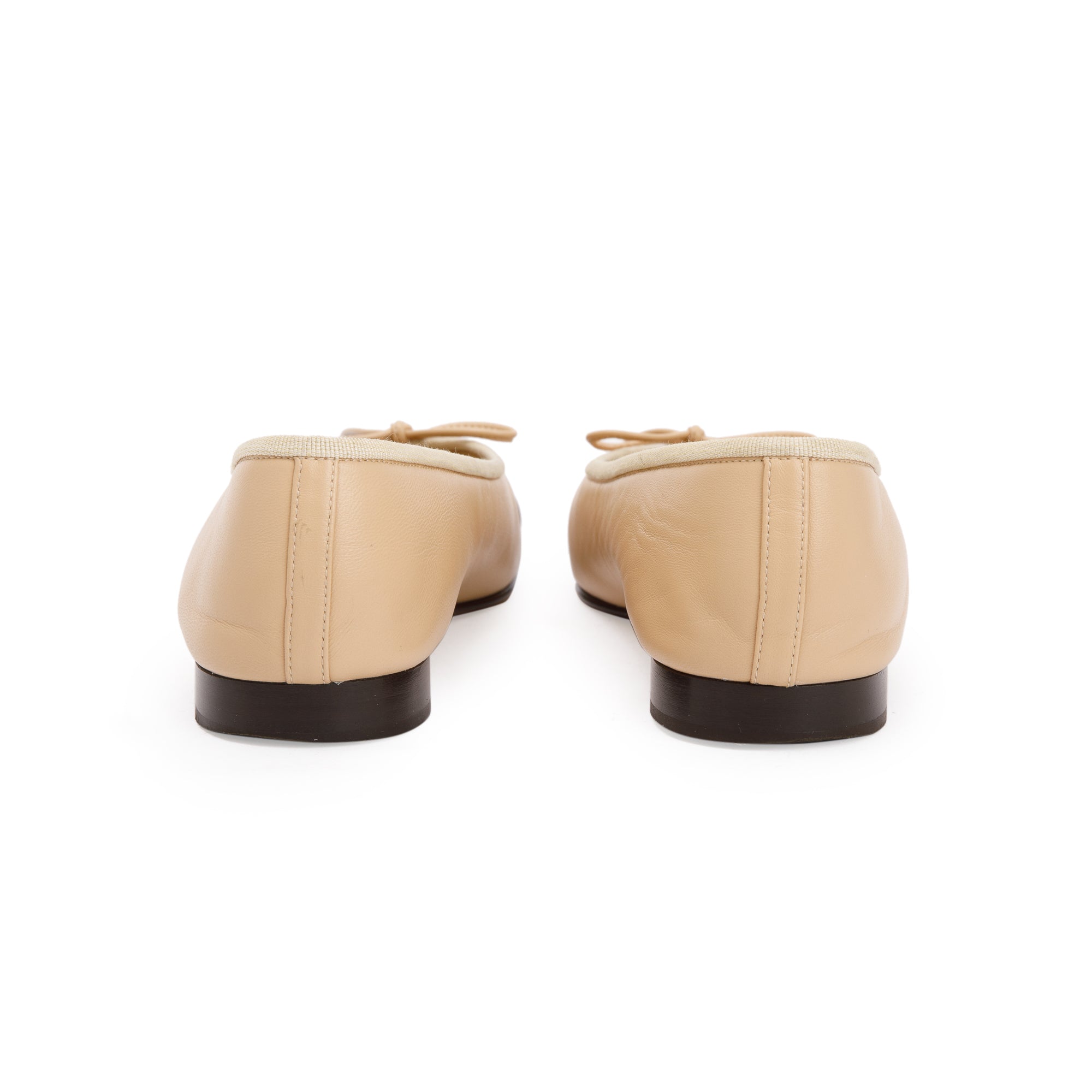 Beige/Black Lambskin Interlocking CC Logo Flats, Size 38 w/ Box