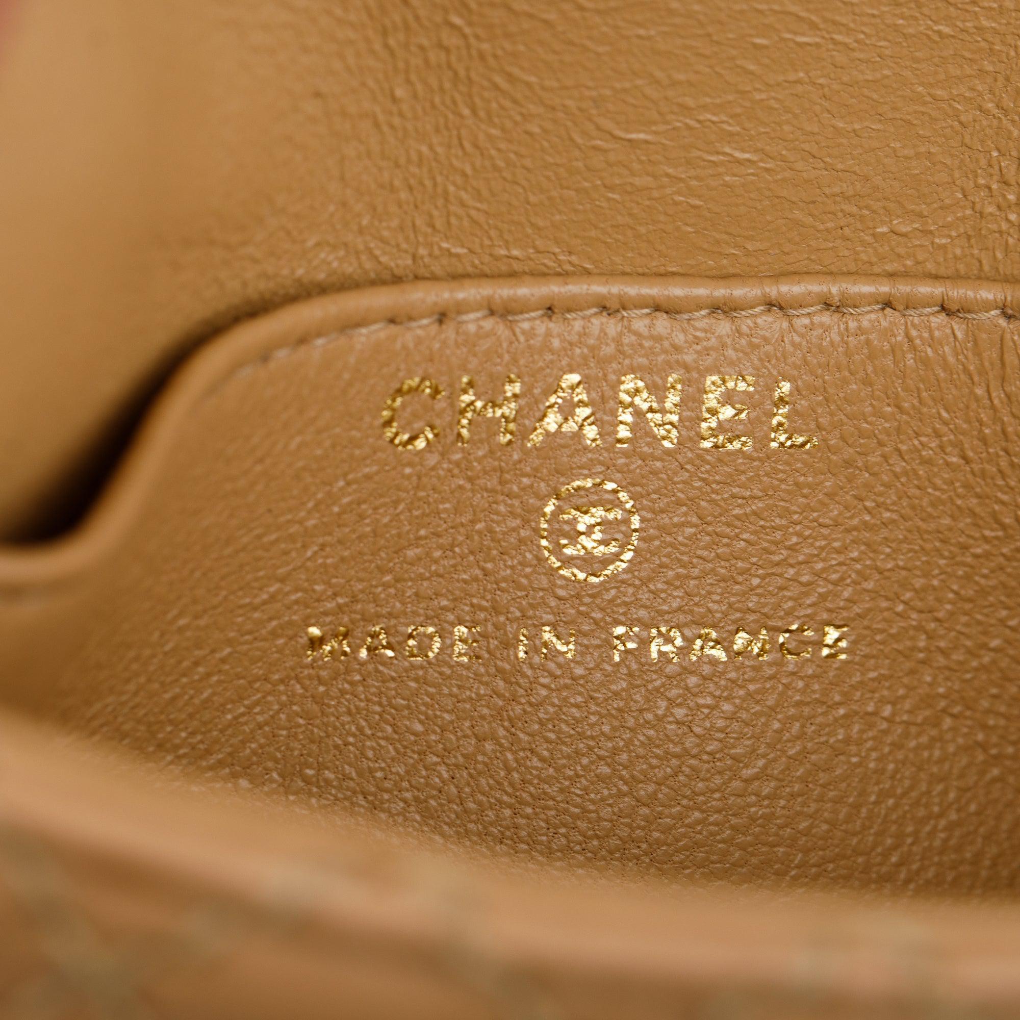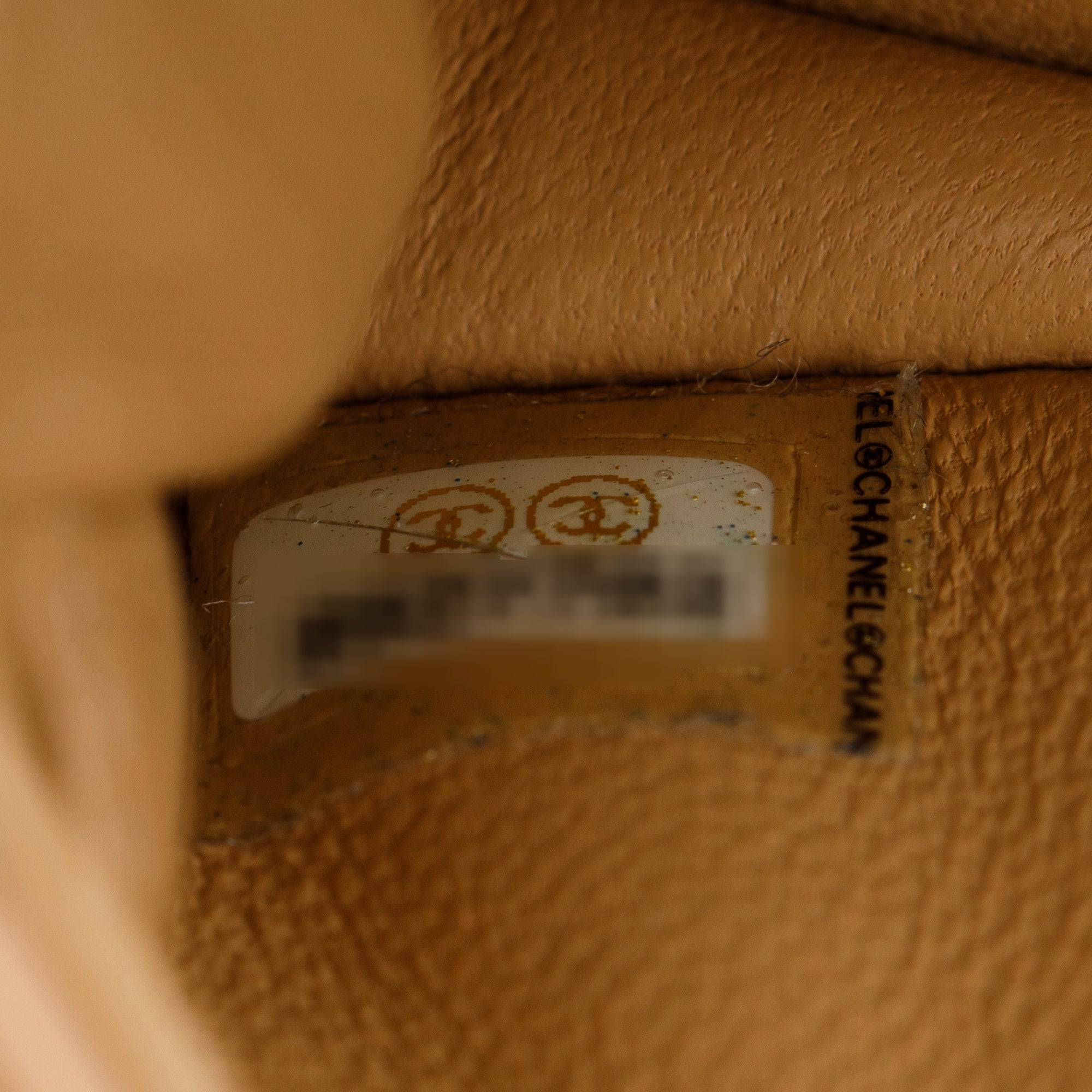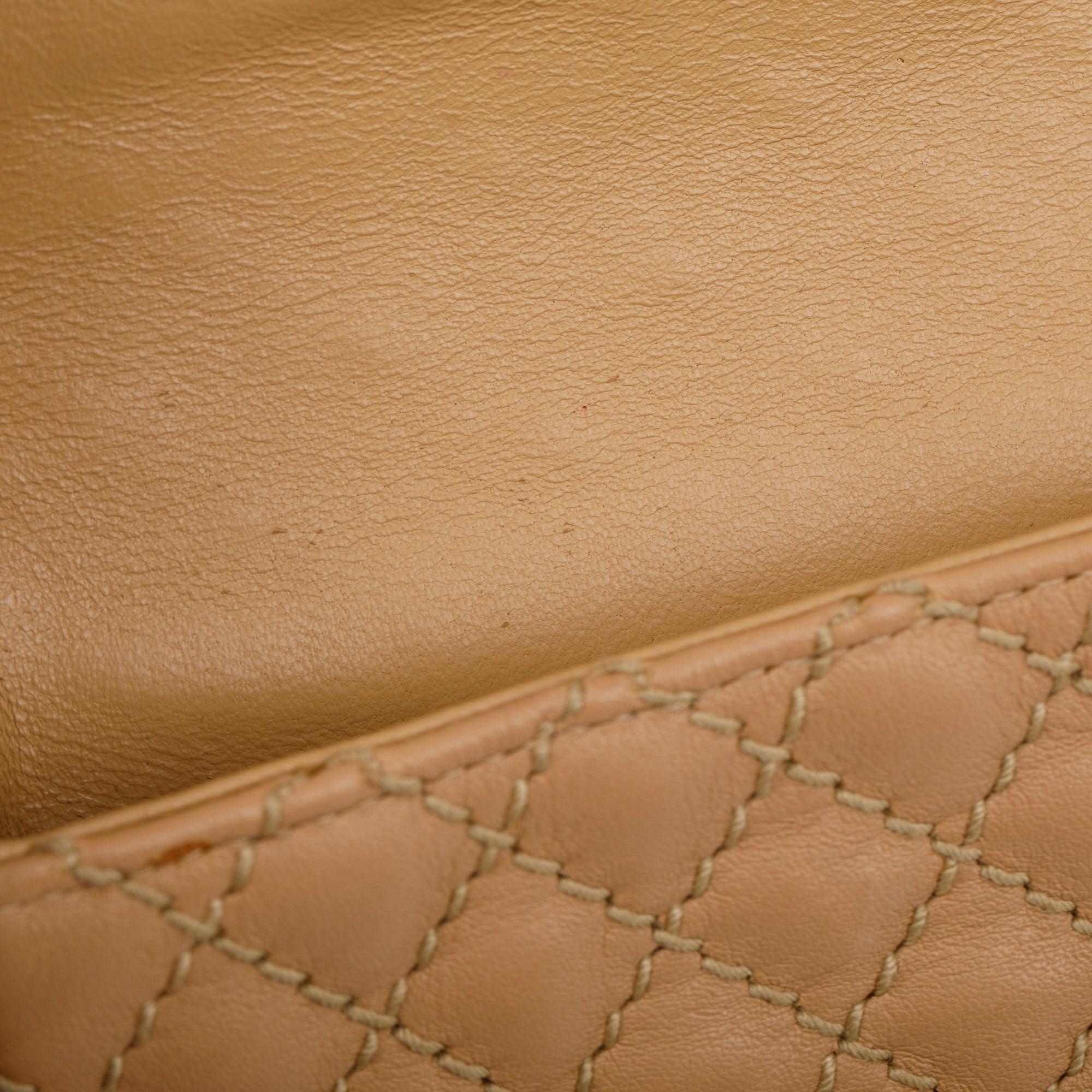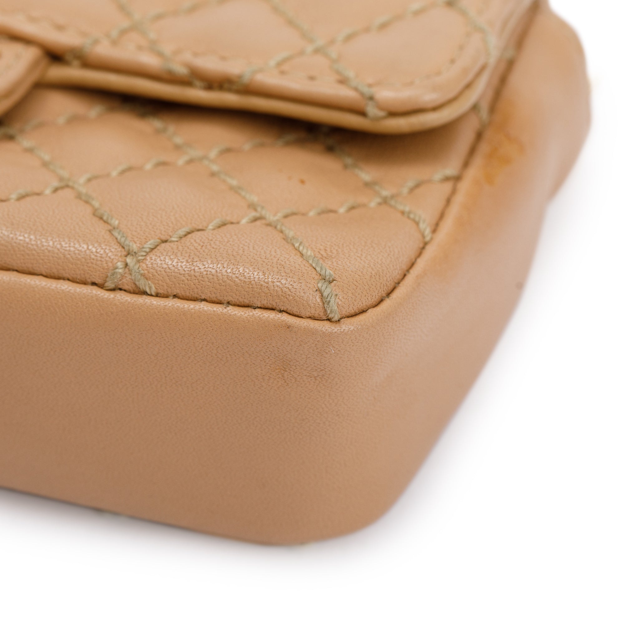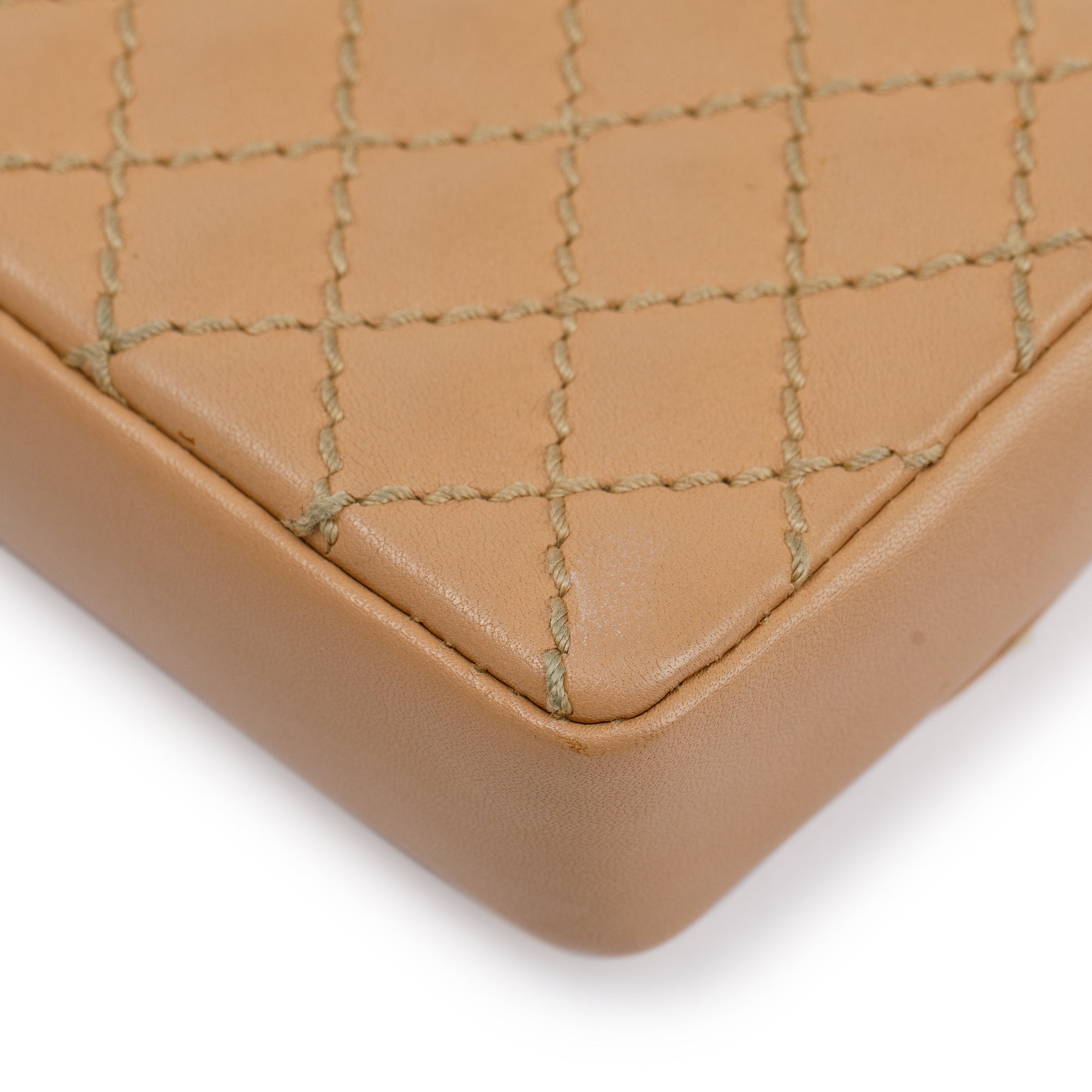 Beige Quilted Lambskin Leather Mini Flap Key Ring Bag Charm w/ Box