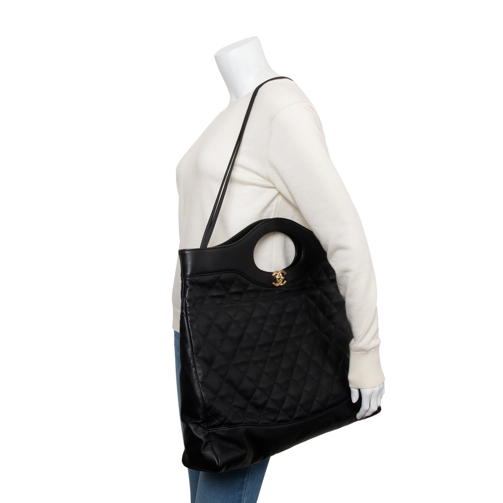 Black Calfskin Leather Large 31 Shopping Tote w/ Authenticity Card