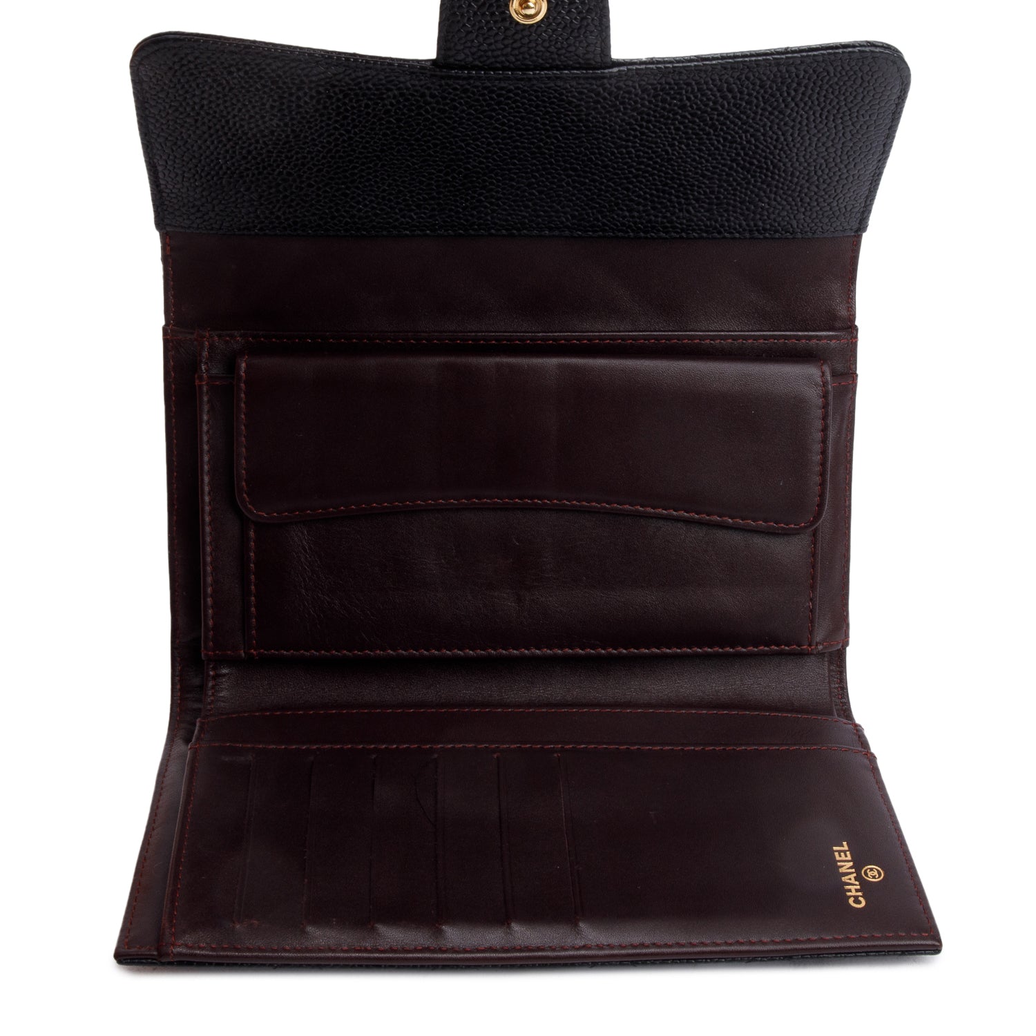 Black Caviar Leather Medium Trifold Wallet w/ Card