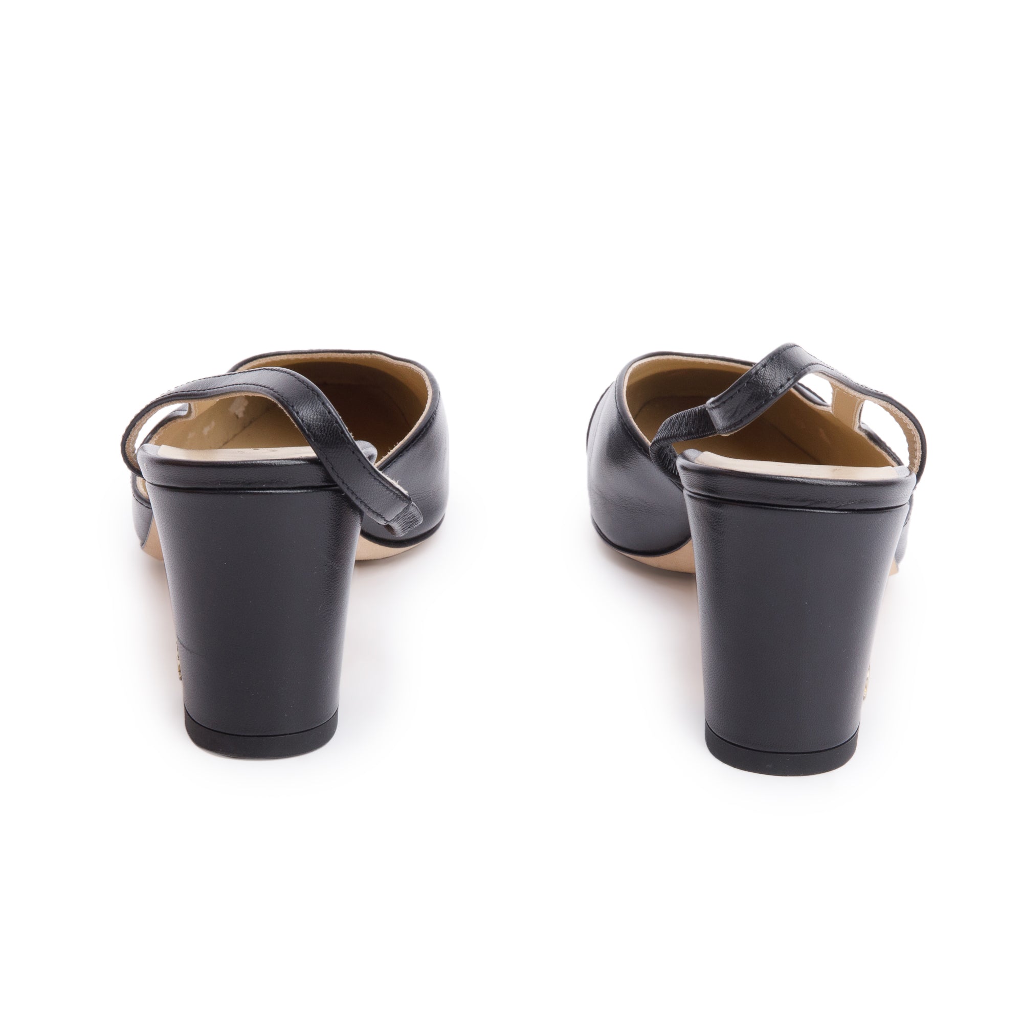 Black Lambskin Grosgrain Interlocking CC Logo Sling Back Shoes, Size 36 w/ Box