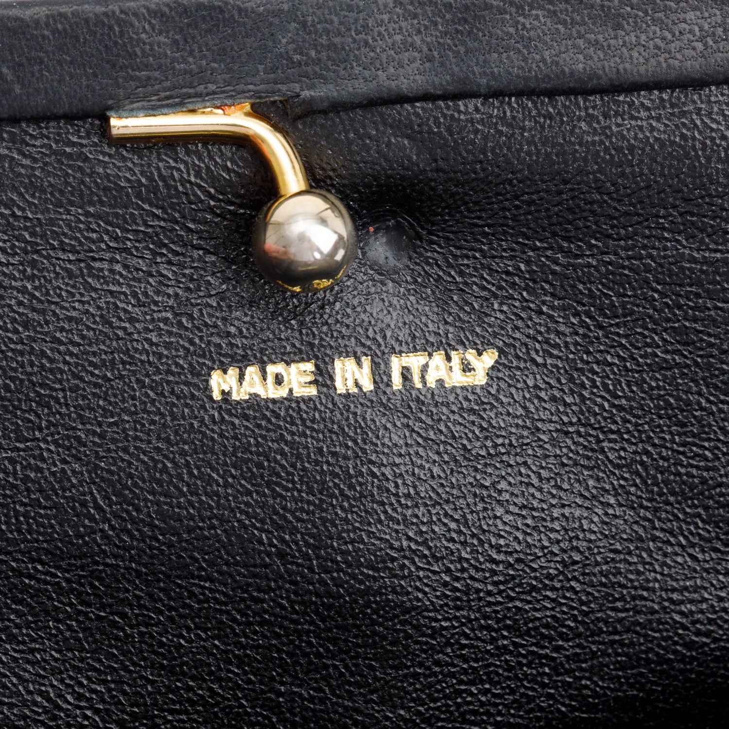Black Lambskin Leather Chain-Link Frame Clutch Crossbody