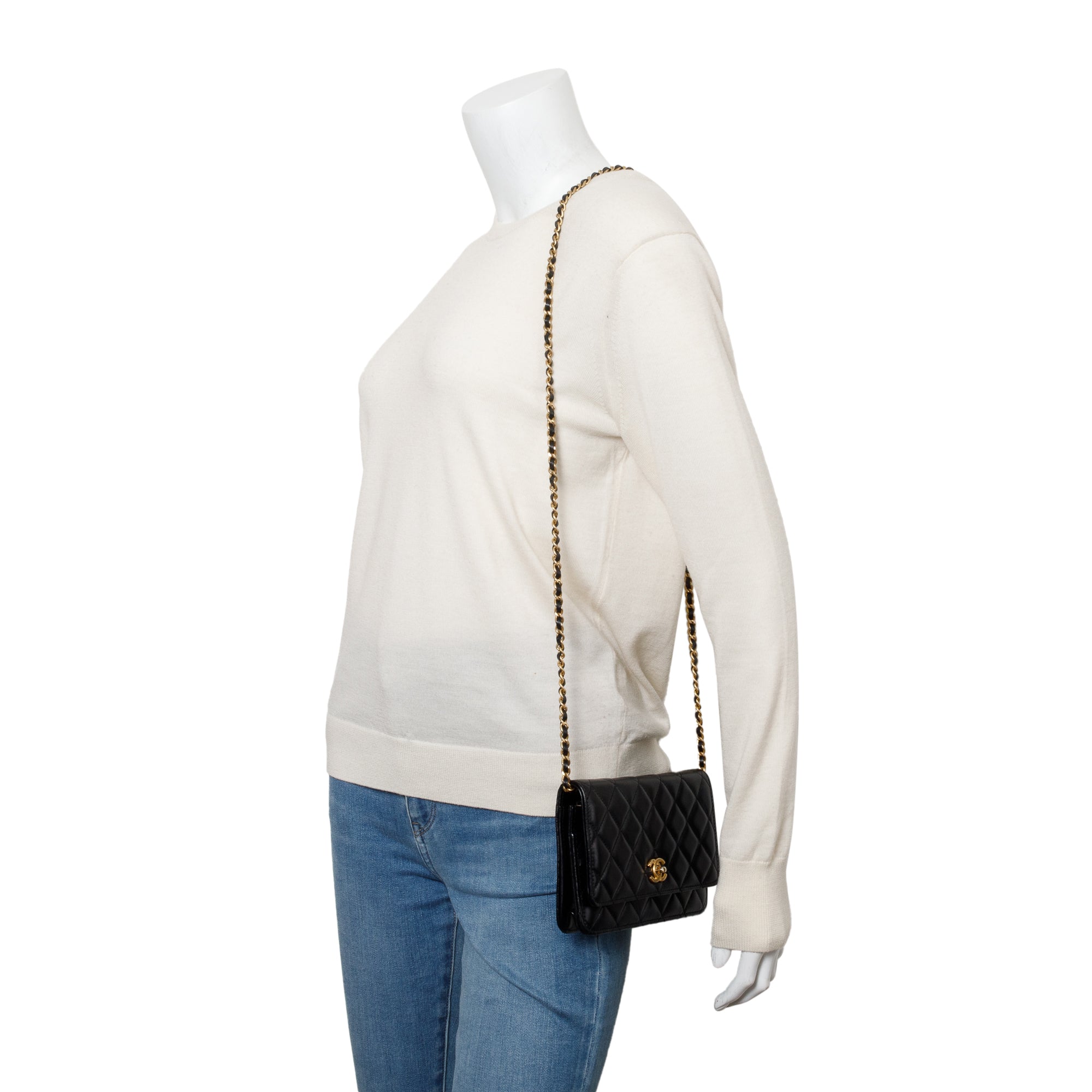 Black Quilted Lambskin Leather CC Coco Crush Classic Wallet on Chain w/ Box & Authenticity Card