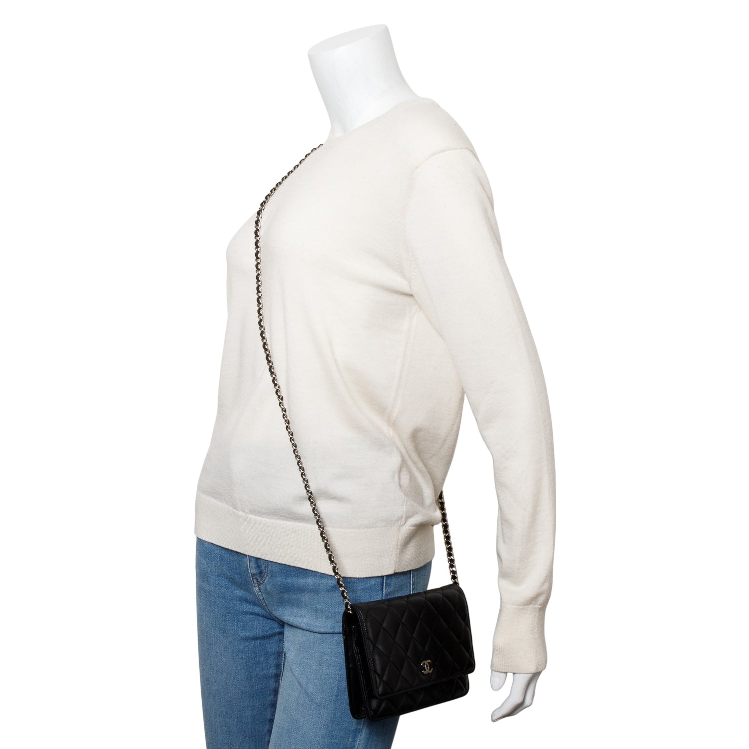 Black Quilted Lambskin Leather Classic Wallet on Chain w/ Box & Authenticity Card