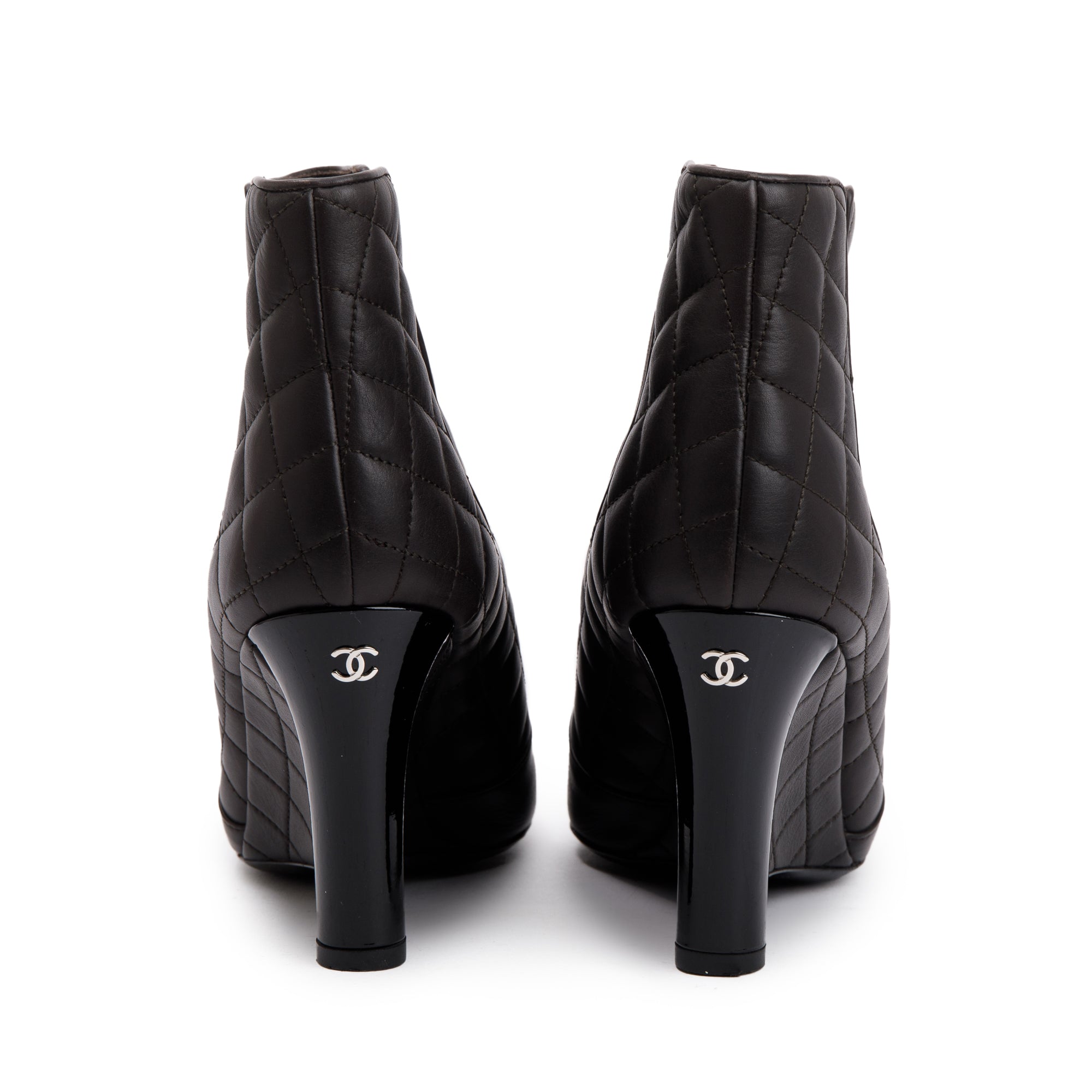 Brown Quilted Leather Interlocking CC Logo Chelsea Boots, Size 38.5