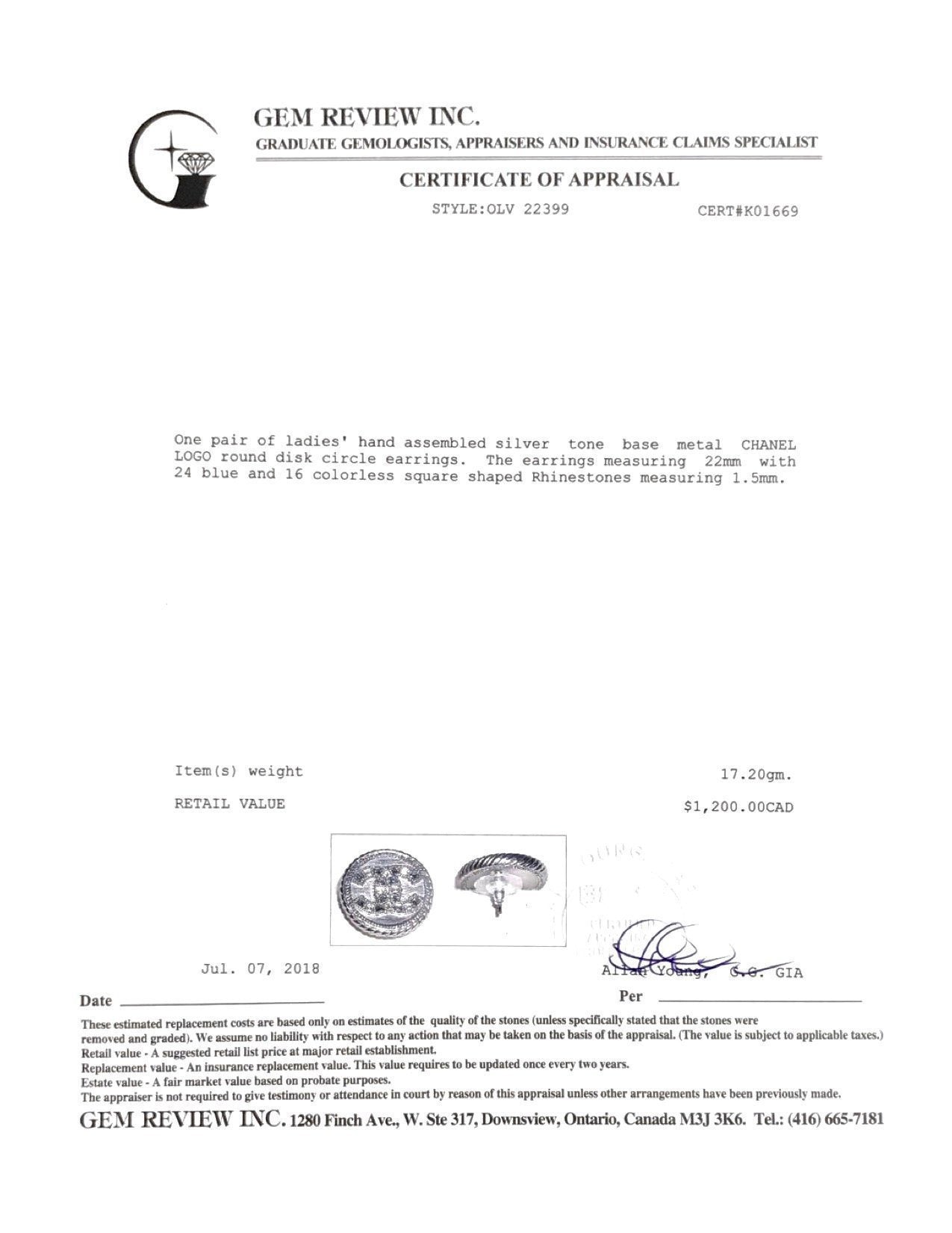 Chanel Crystal CC Logo Round Earrings