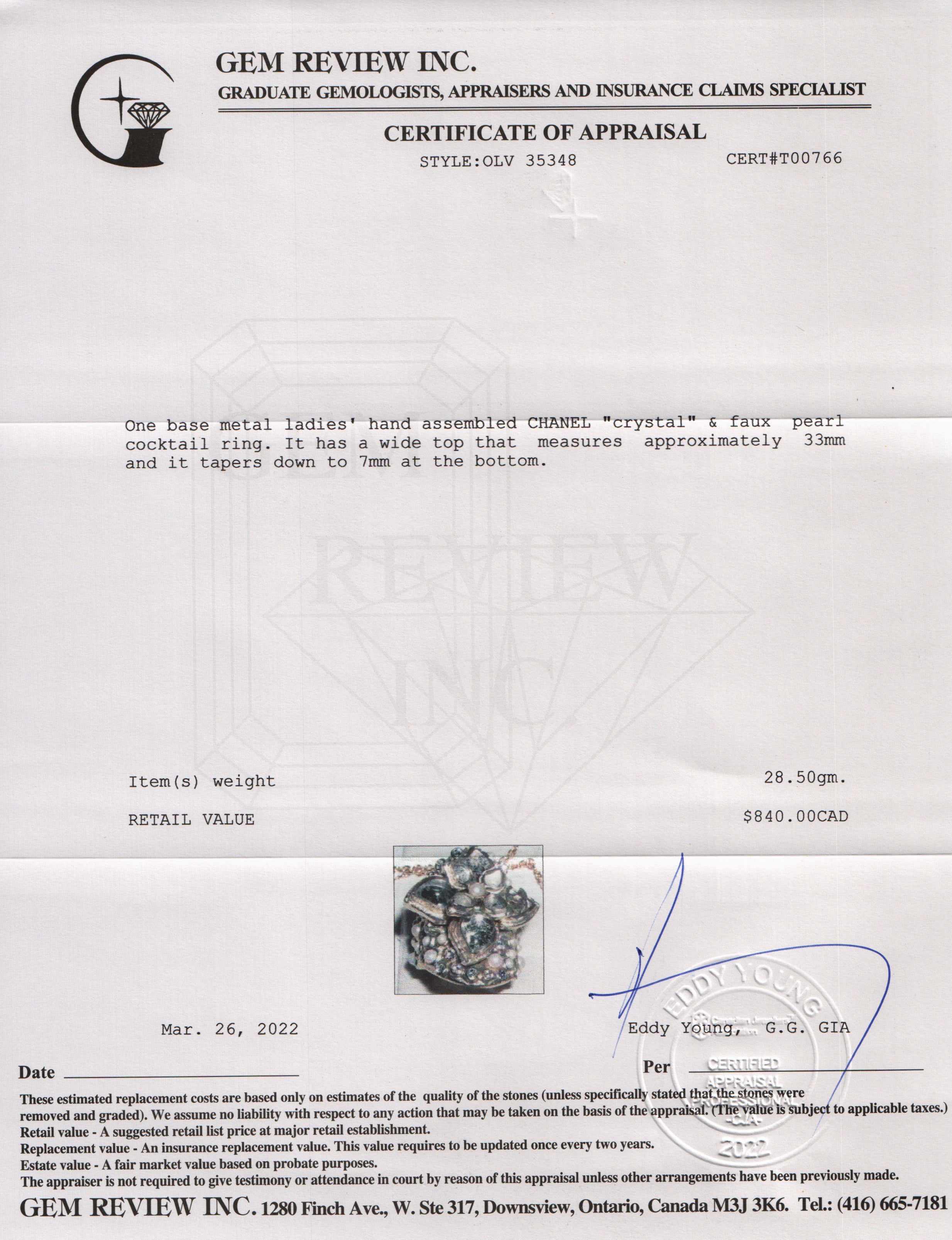 Included Items: Original Chanel Box & Pouch and Gem Review Appraisal