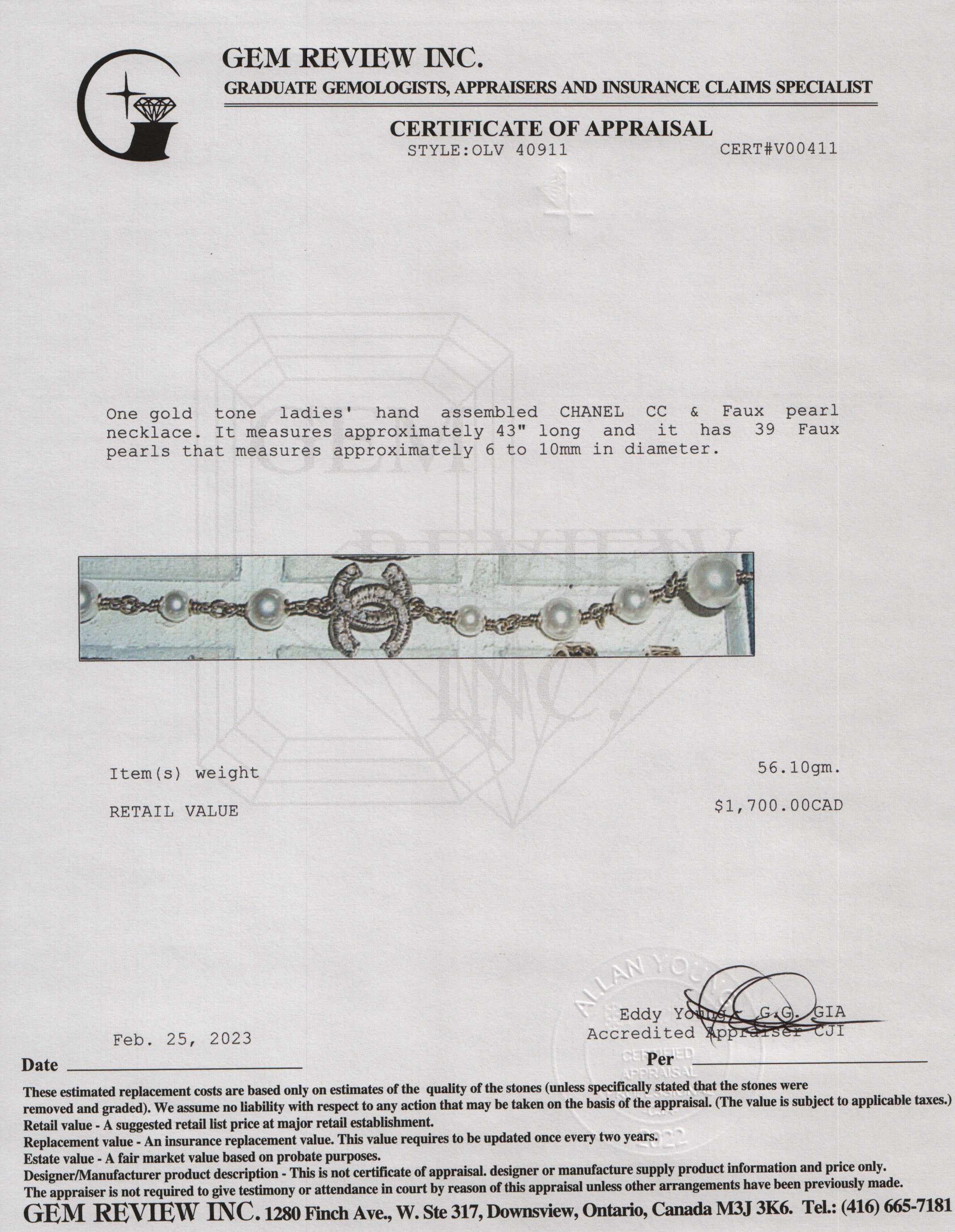 Faux Pearl & CC Station Necklace w/ Box & Receipt