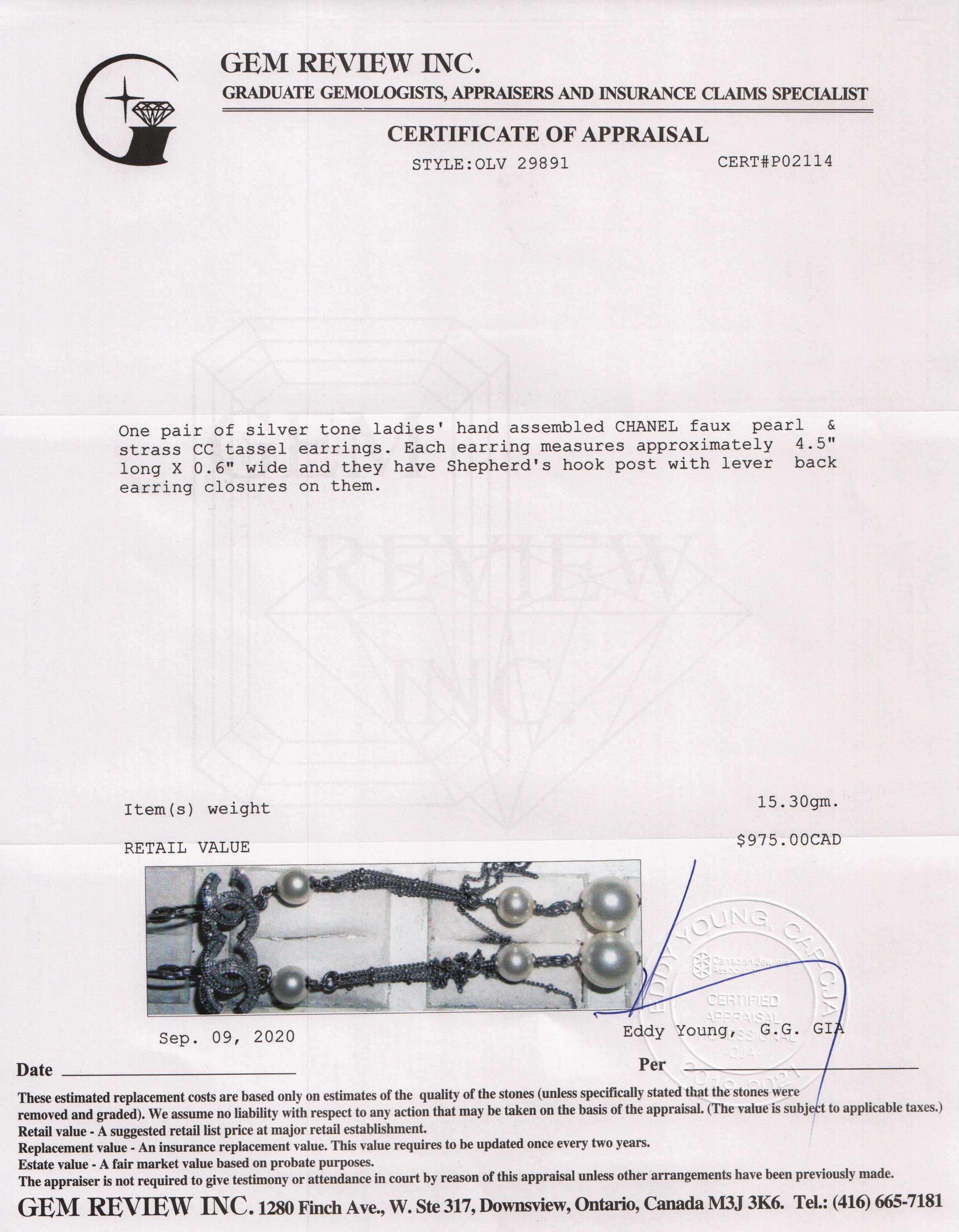 Chanel Faux Pearl & Strass CC Tassel Earrings