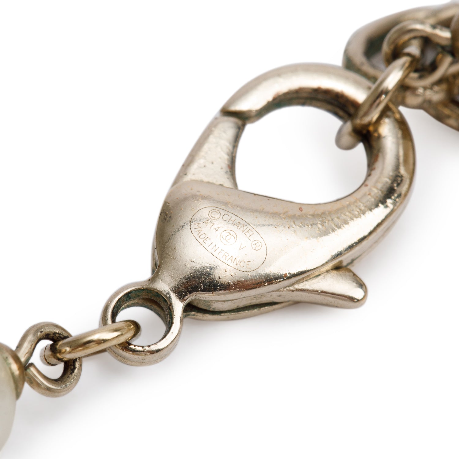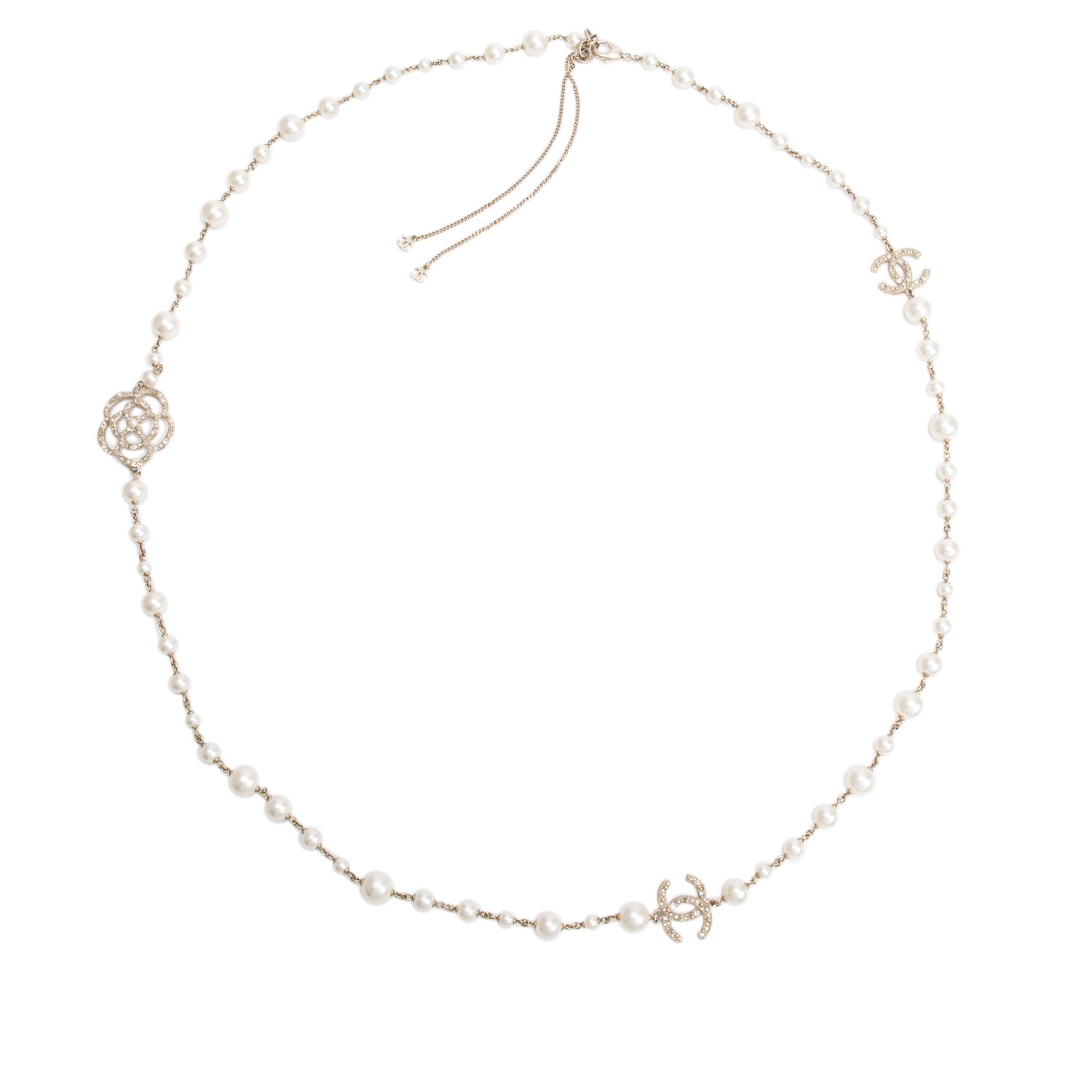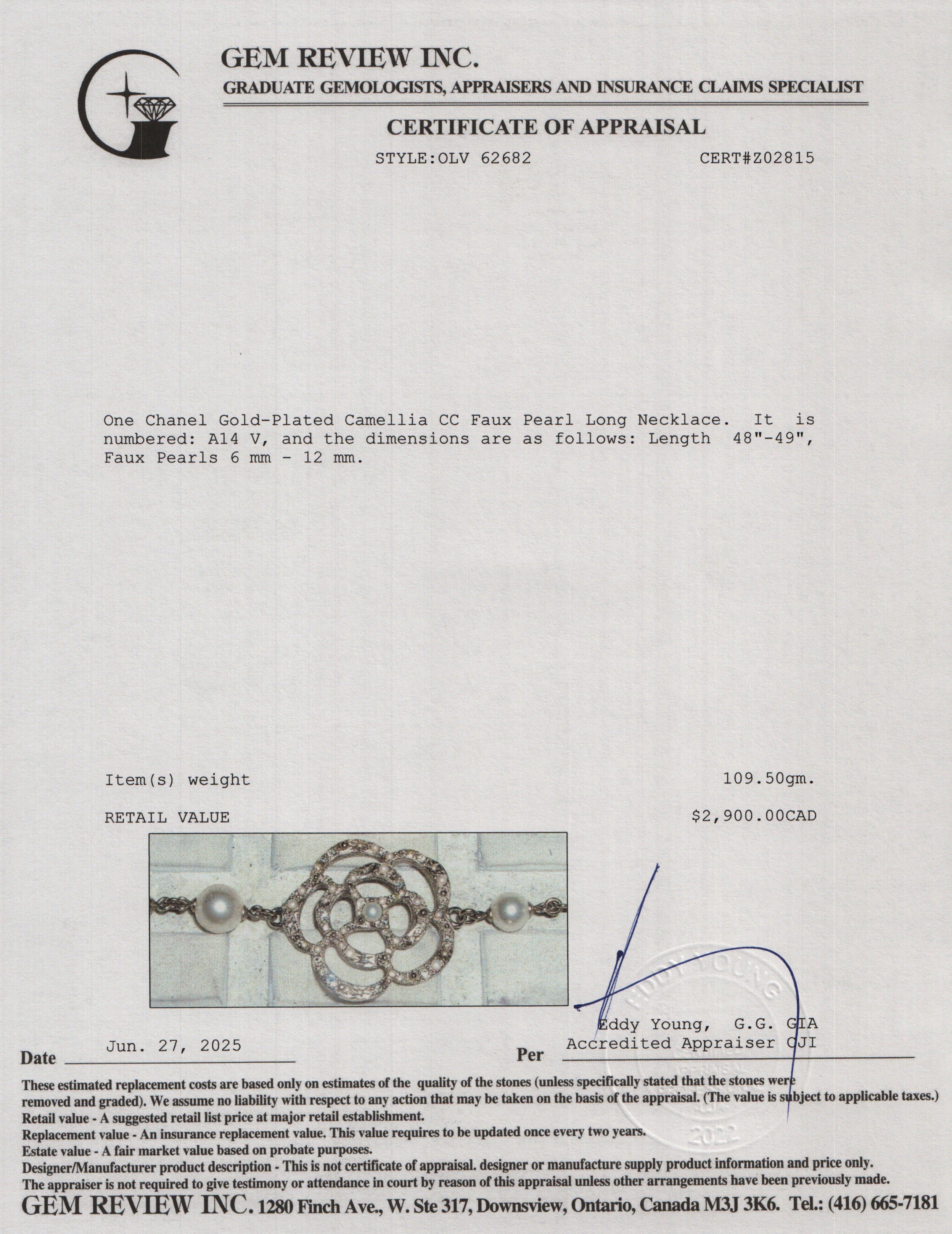 Gold-Plated Camellia CC Faux Pearl Long Necklace w/ Box