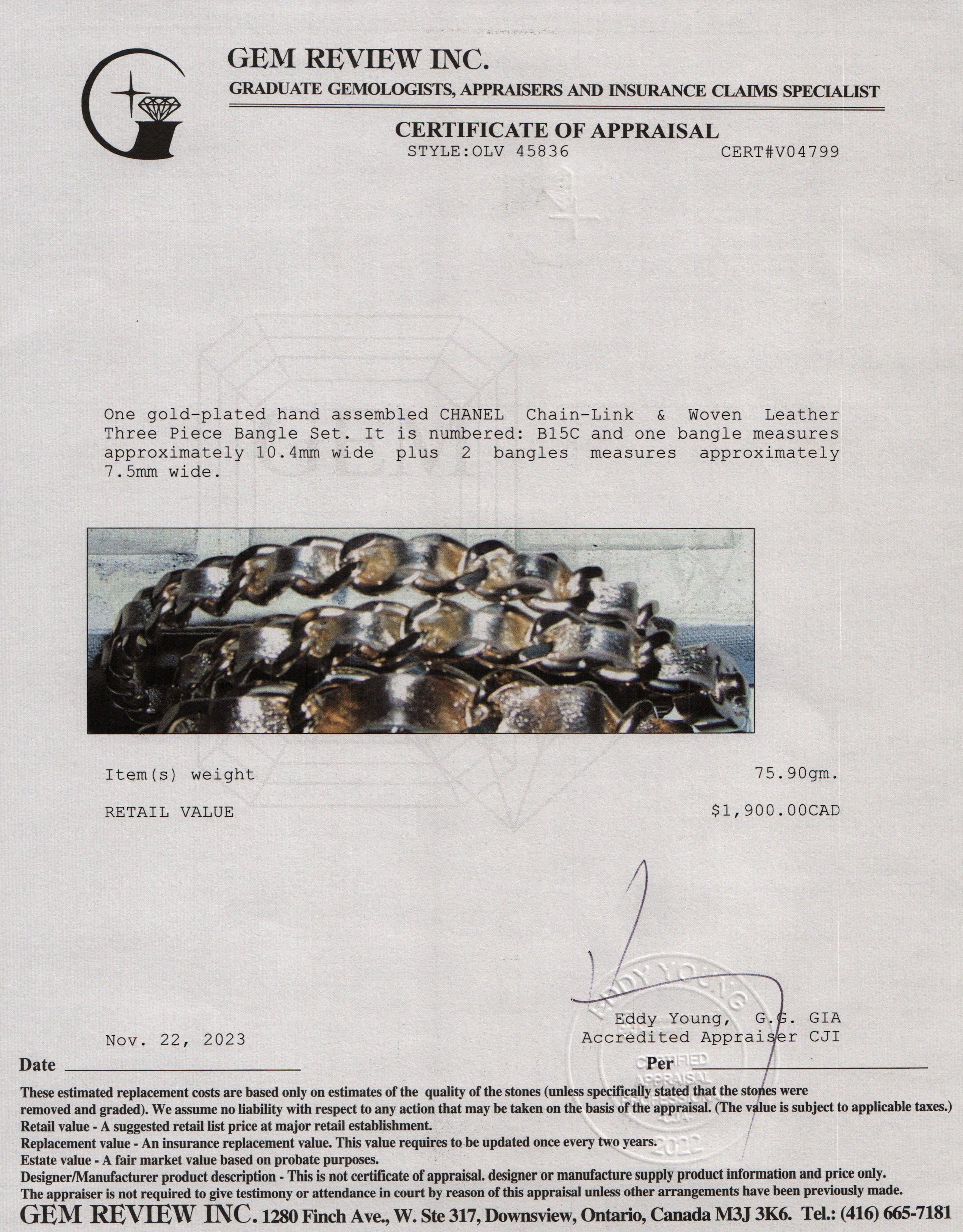 Gold Plated Chain-Link & Woven Leather Three-Piece Bangle Set
