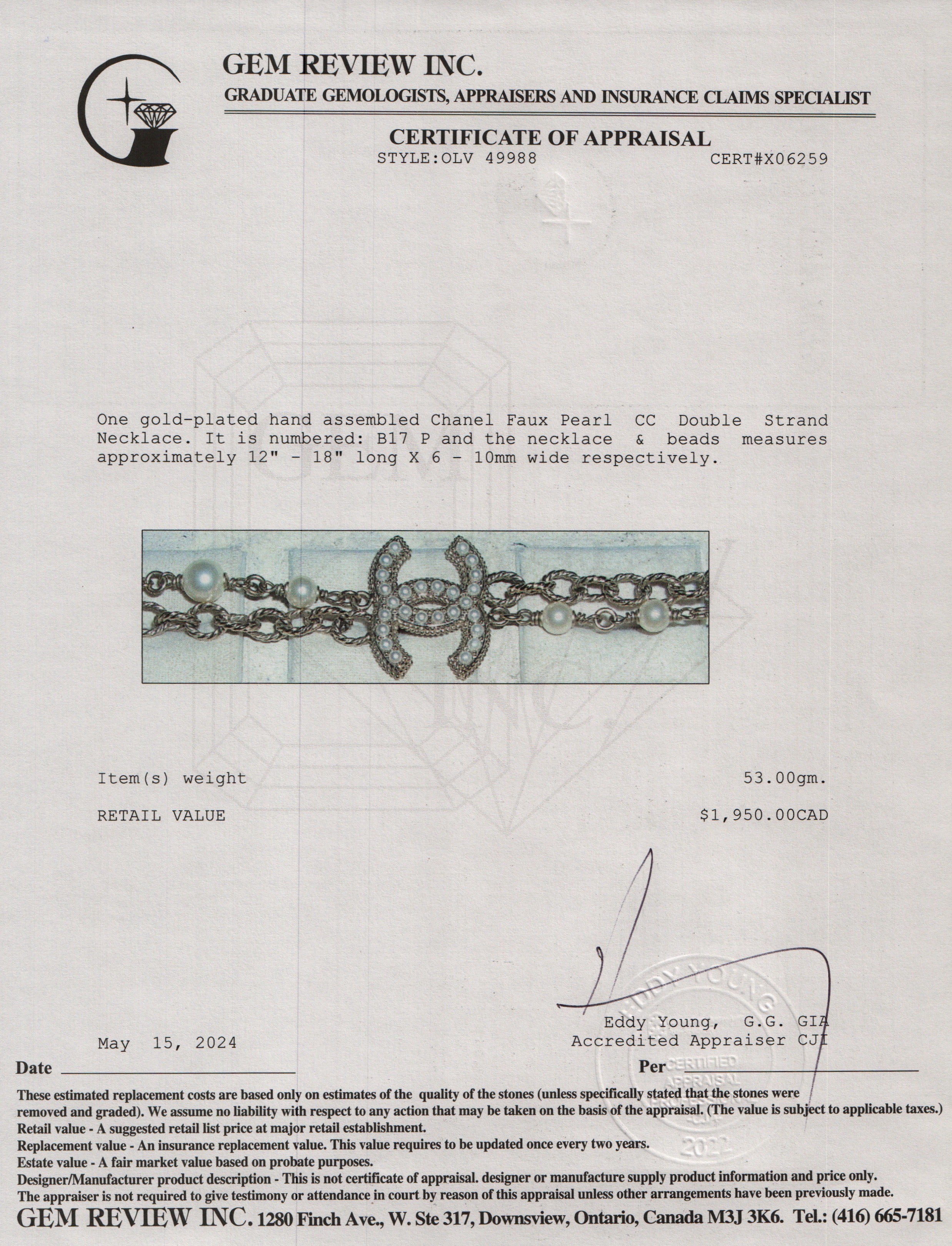 Gold Plated Faux Pearl CC Double Strand Necklace