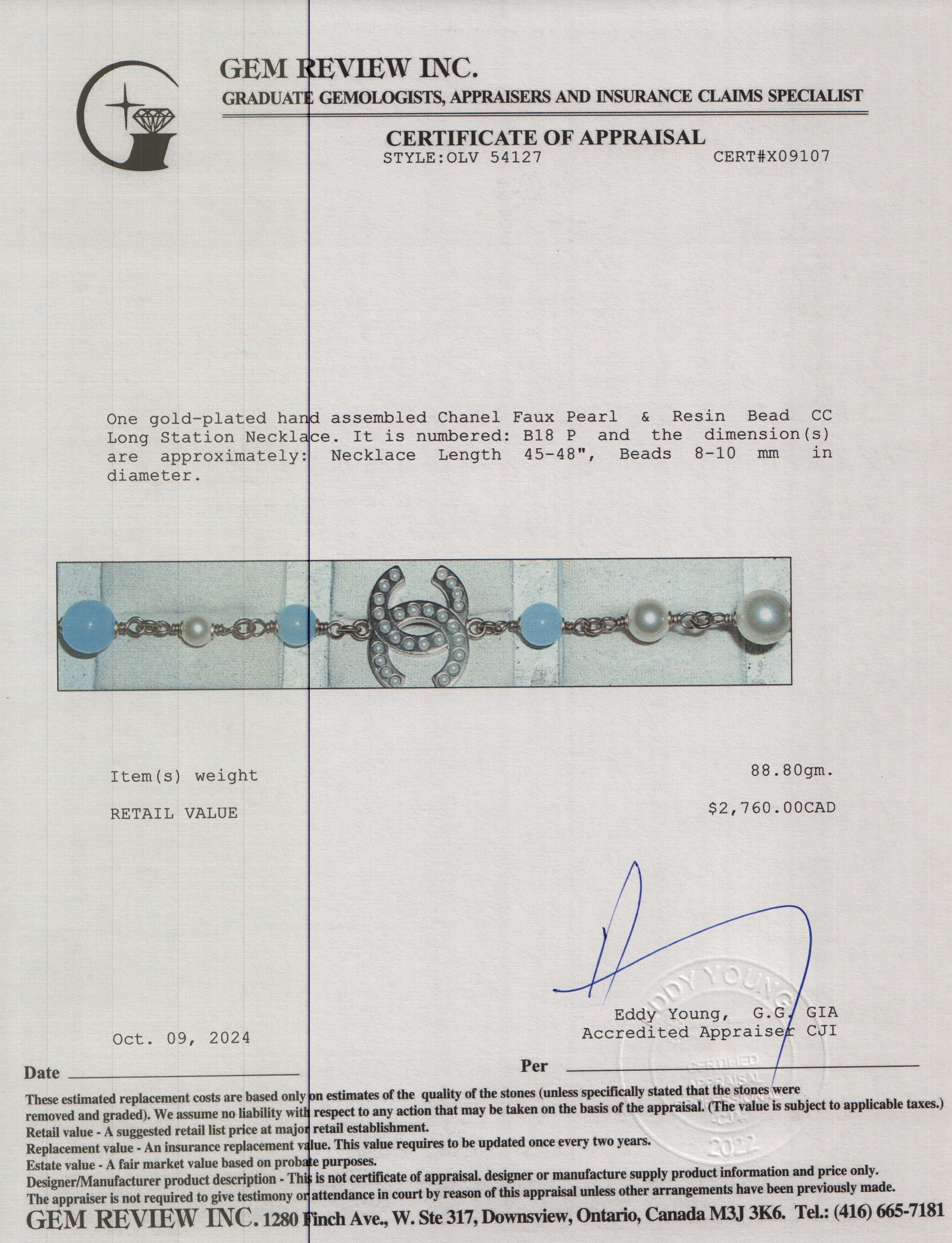 Gold-Plated Faux Pearl & Resin Bead CC Long Station Necklace